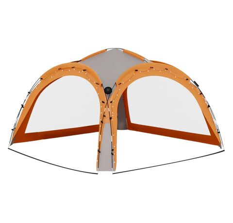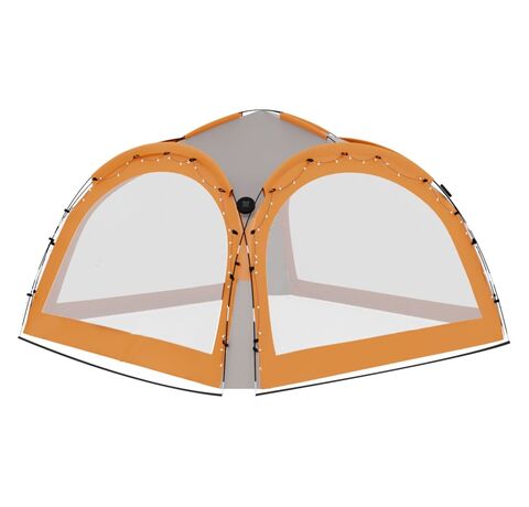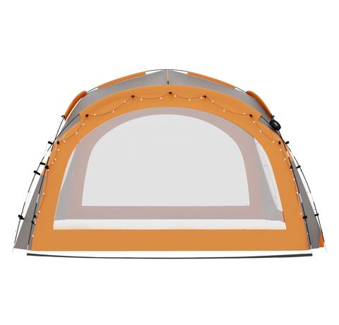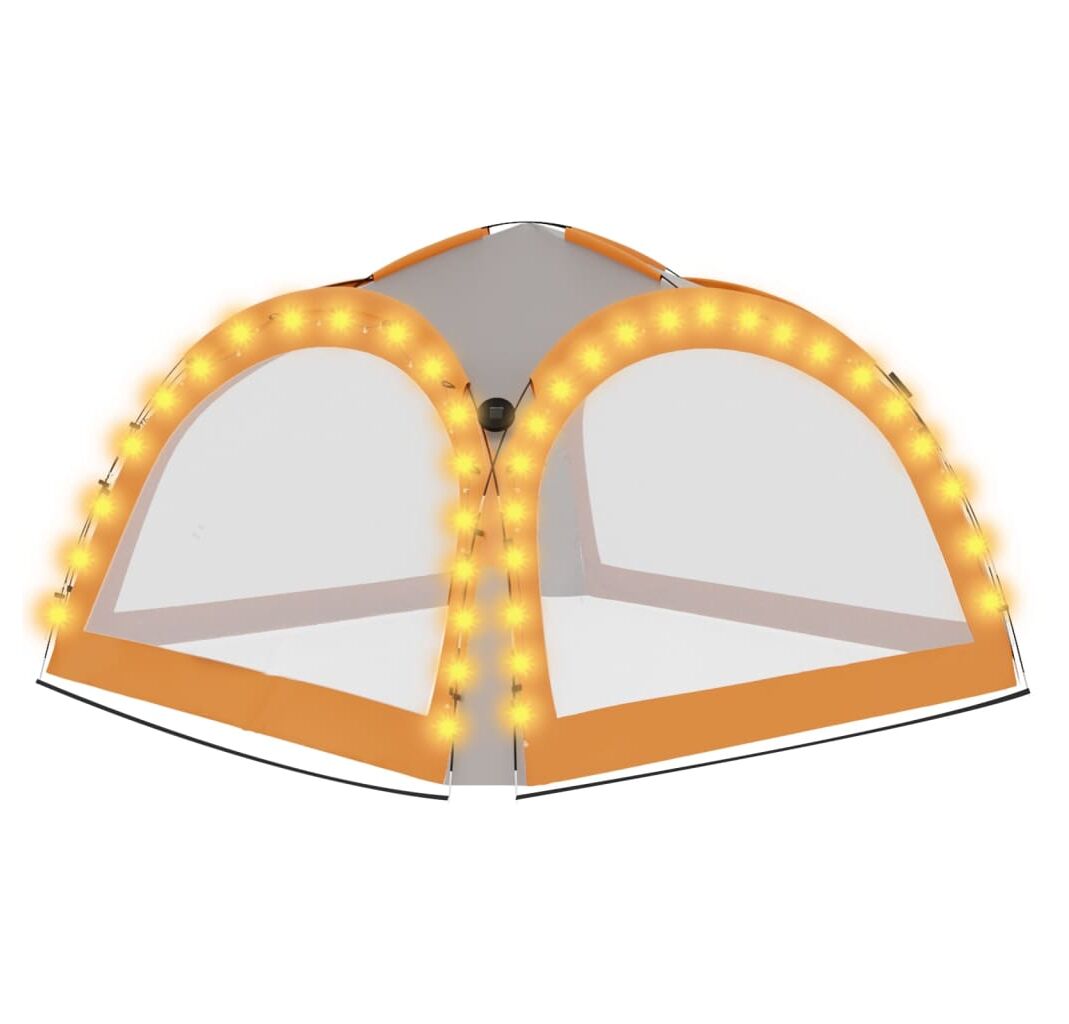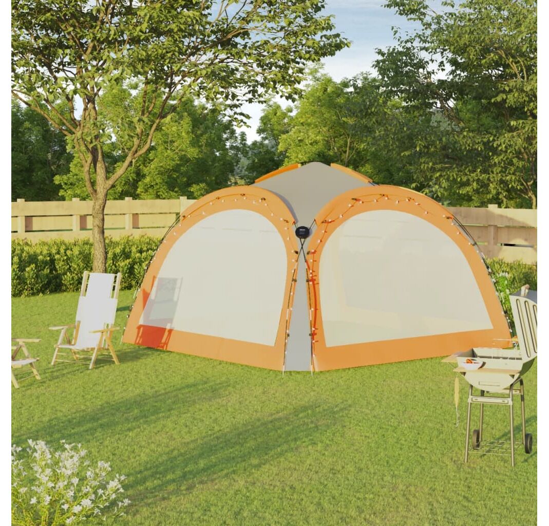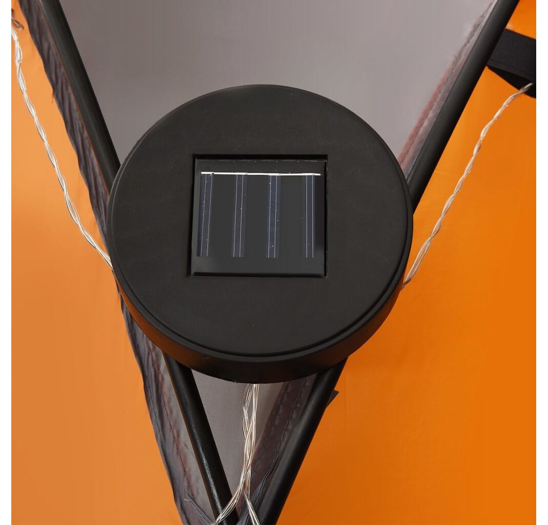 Cortul de petrecere este confecționat dintr-o țesătură de poliester 100% cu înveliș din PA, fiind rezistent la raze UV. Cadrul este fabricat din fibră de sticlă robustă, fiind rezistent la rugină și având greutate redusă. Cei patru pereți laterali tip „plasă de țânțari” oferă o protecție ideală împotriva tuturor tipurilor de insecte. Fiind prevăzuți cu fermoar, aceștia pot fi atașați în câteva secunde. În plus, iluminatul cu 96 LED-uri poate fi pornit și oprit manual cu ușurință, iar modulul solar furnizat încarcă bateria integrată în timpul zilei.