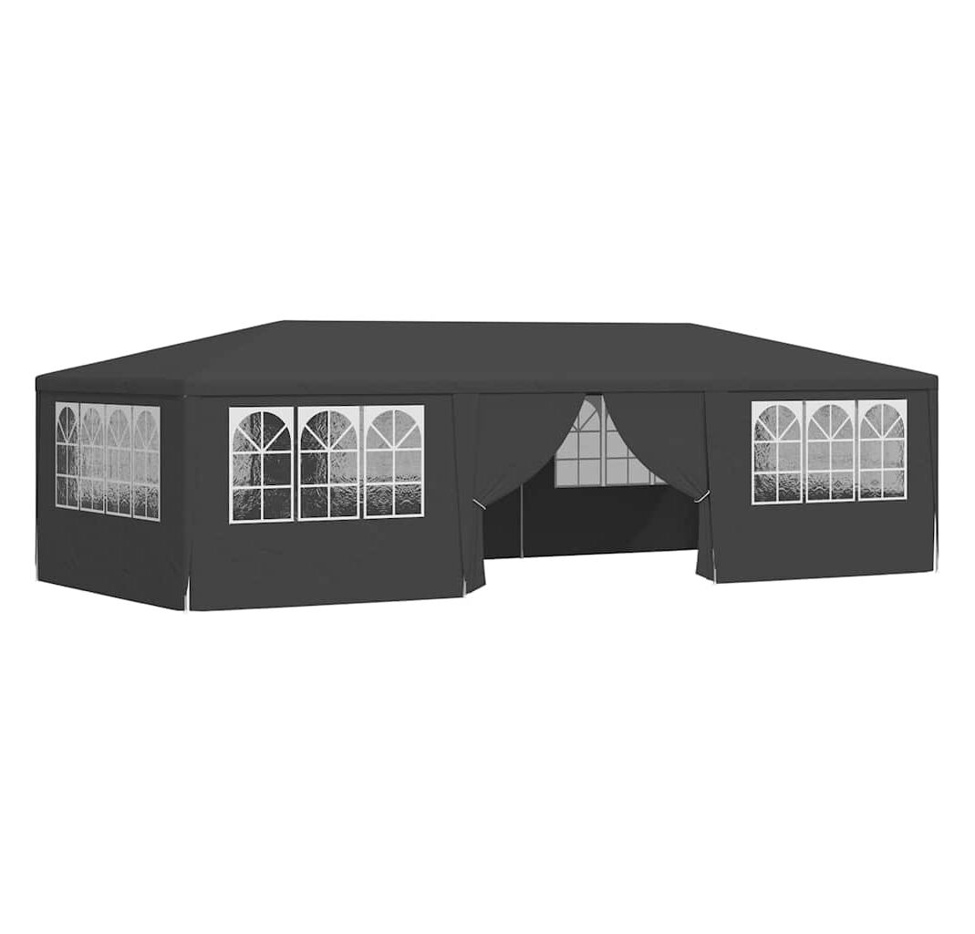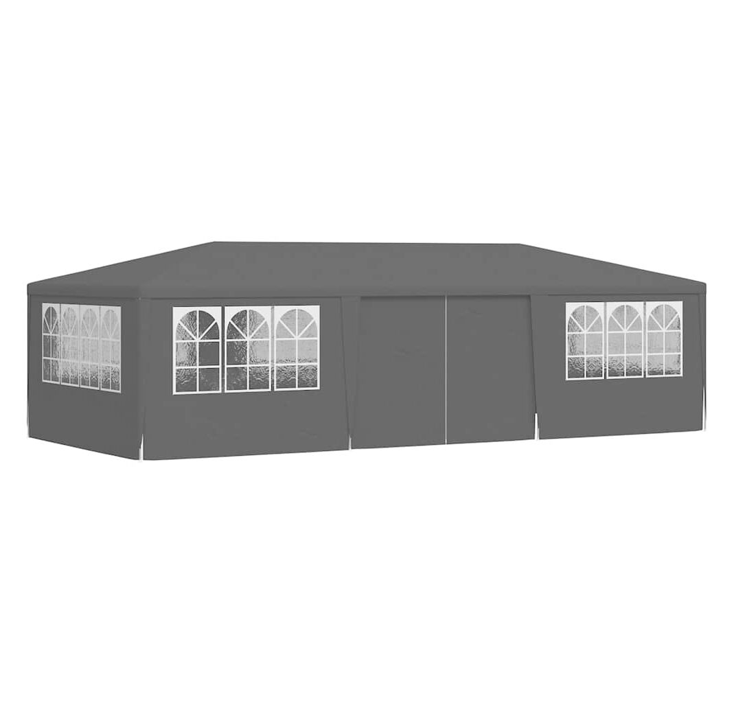 Pavilionul de grădină este realizat din polietilenă rezistentă la apă și raze UV, fiind foarte practic pentru utilizarea în exterior. Cadrul este fabricat din oțel rezistent la rugină, asigurând stabilitate și durabilitate copertinei de exterior. Cortul de petreceri este prevăzut cu panouri laterale, fiecare cu ferestre decorative, și cu o ușă cu fermoar, pentru acces ușor. Pavilionul de grădină este ușor de asamblat.