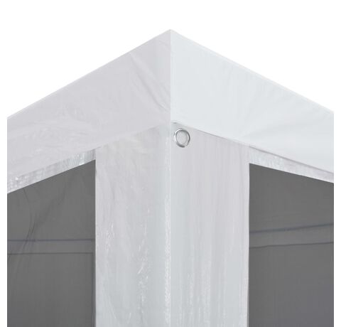 Fabricat din oțel foarte rezistent, vopsit electrostatic, acest cort pentru petrecere este extrem de durabil. Acoperișul este fabricat din polietilenă de calitate superioară, ceea ce îl face rezistent la apă și UV. Cortul are patru pereți laterali din plasă, care vă protejează de insectele nesuferite. Unul dintre pereții laterali are o intrare cu fermoar pentru acces ușor. Cortul este ușor de instalat cu accesoriile de montare incluse.