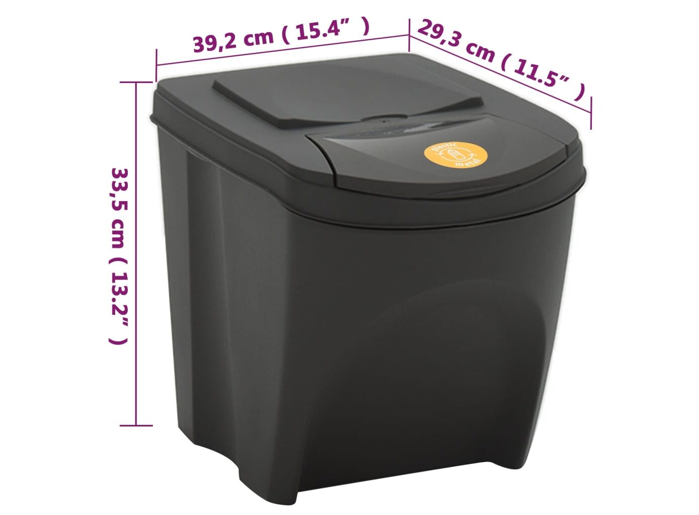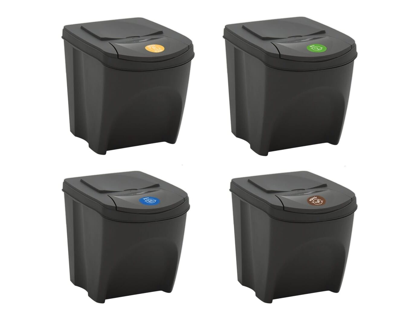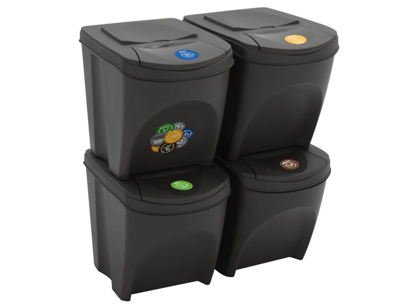 • Cu etichete de separare a deșeurilor pentru fiecare coș (sticlă, hârtie, plastic, organic, altele)