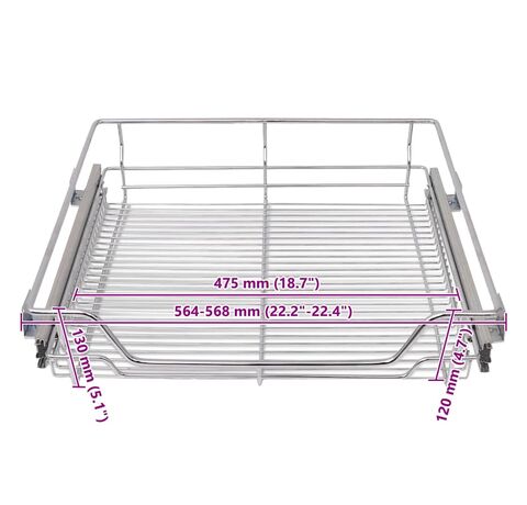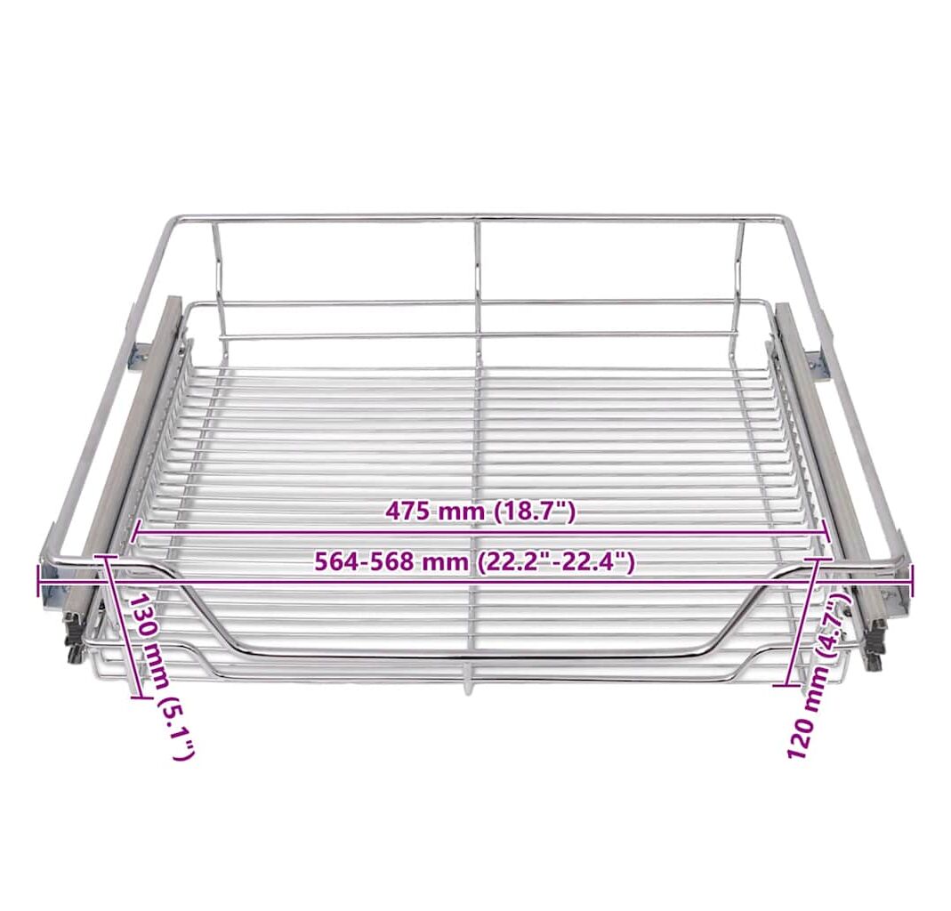 - Dimensiuni coș de sârmă: 475 x 410 x 120 mm (l x ad. x î)