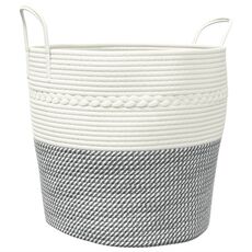 Coș de depozitare, gri și alb, Ø43x38 cm, bumbac