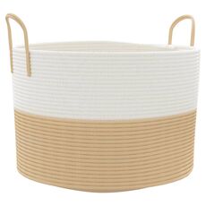 Coș de depozitare, bej și alb, Ø43x38 cm, bumbac