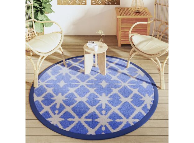 Covor de exterior, ARAKIL albastru și alb, Ø160 cm, PP