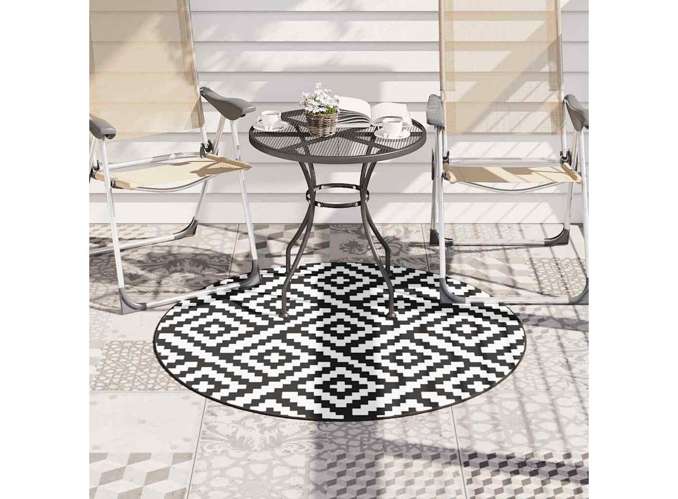 Covor de exterior, ARAKIL alb și negru, Ø120 cm, PP