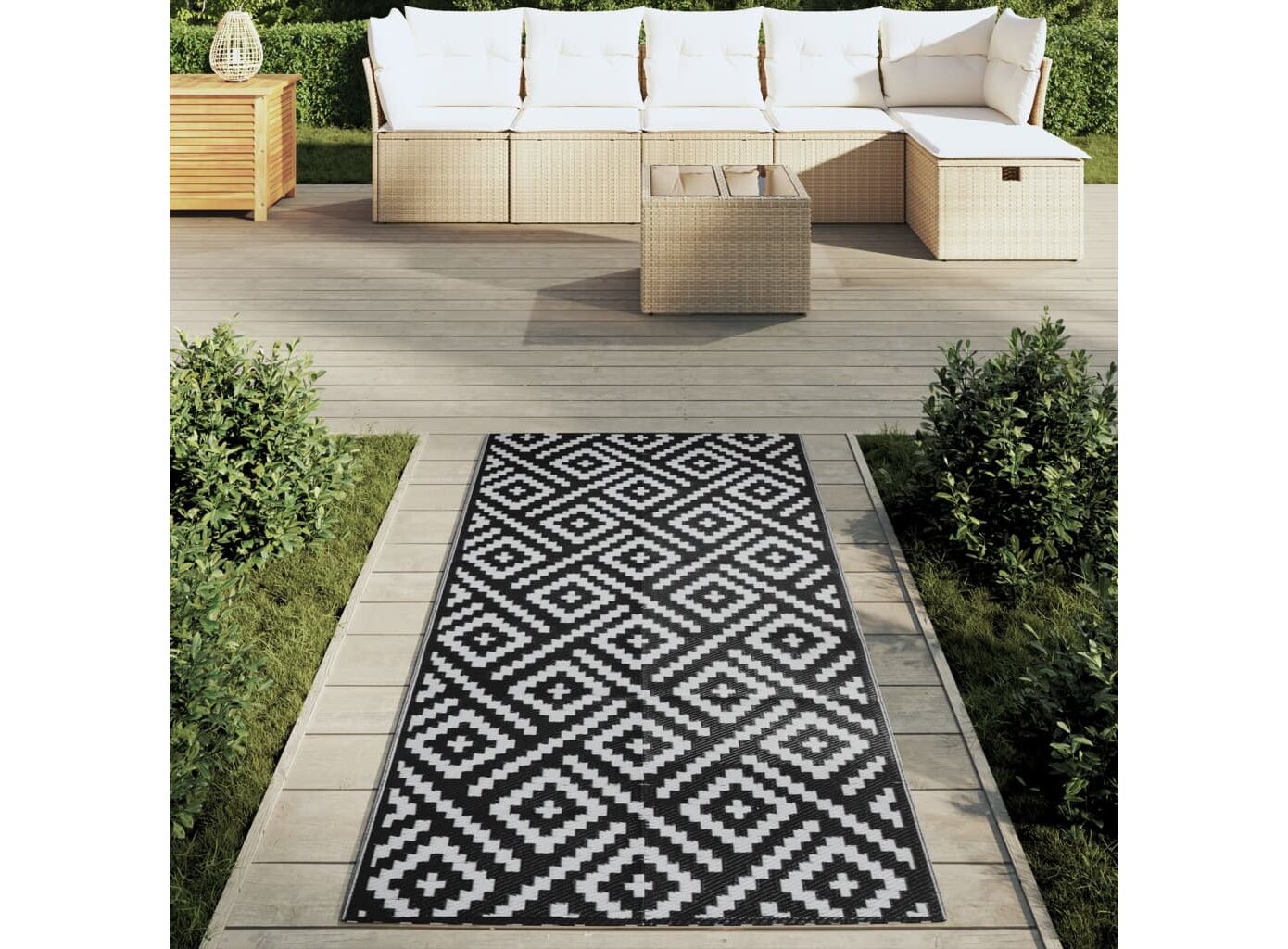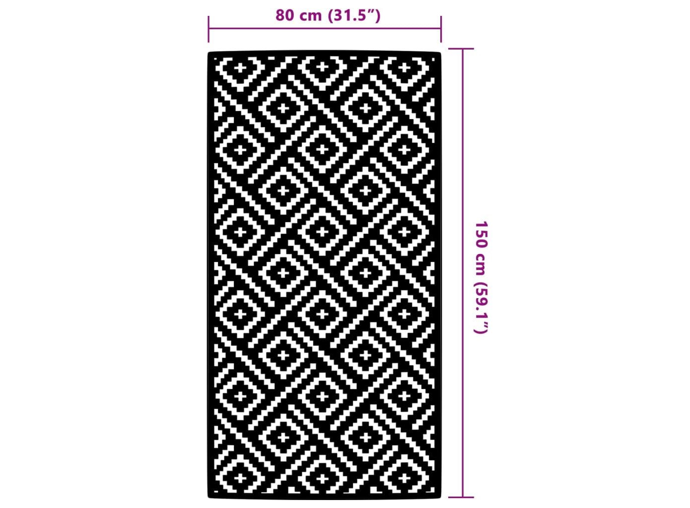 Covor de exterior, ARAKIL alb și negru, 80x150 cm, PP