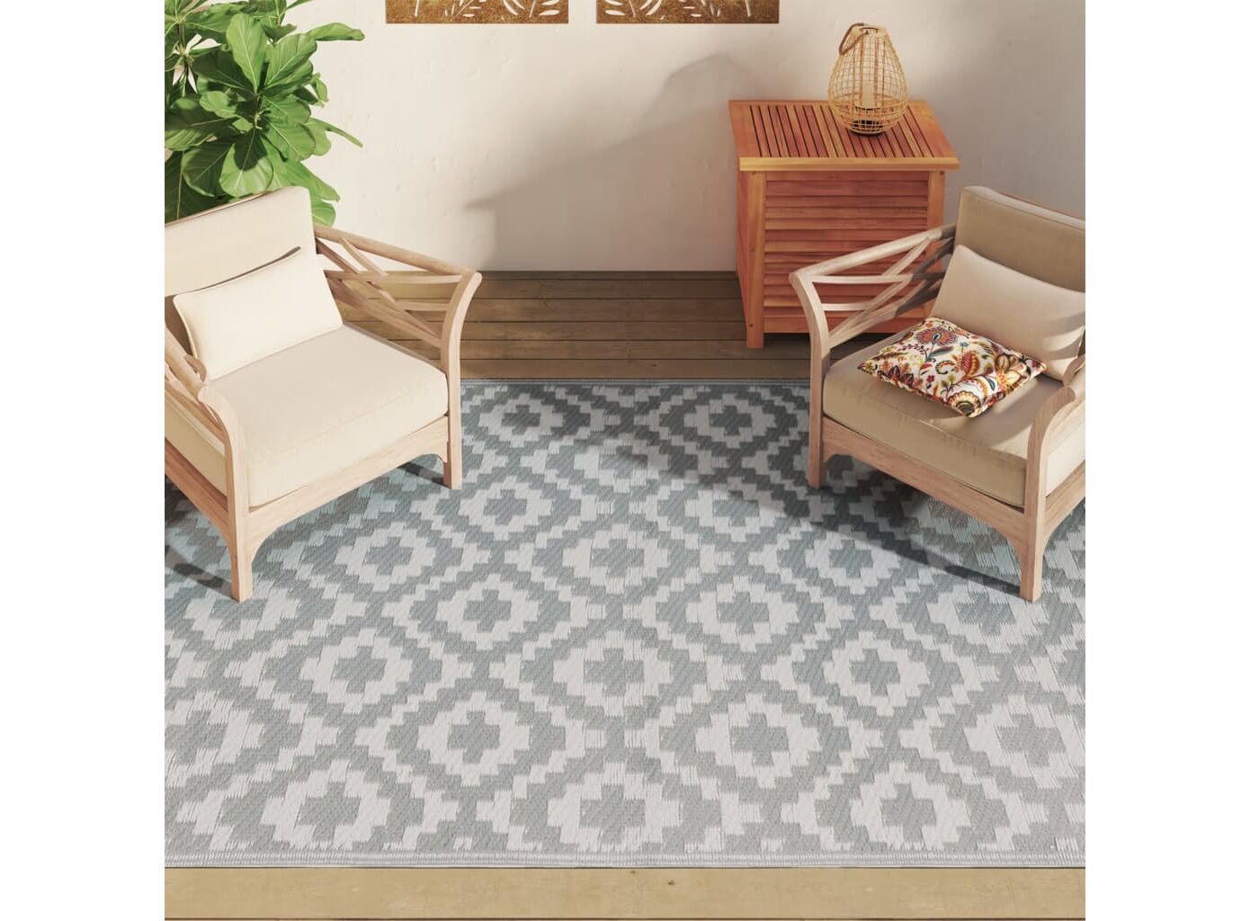 Acest covor de exterior modern va aduce un plus decorativ interesant în spațiul dvs. de locuit în aer liber! Așezați-l în zona dvs. de relaxare de pe balcon, pe terasă, pentru a vă simți ca acasă.