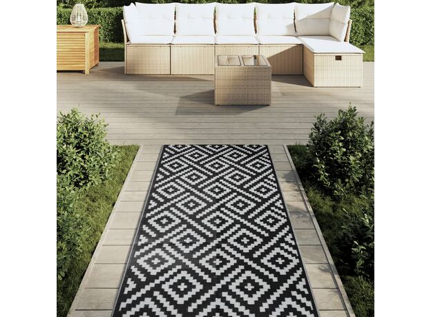 Covor de exterior, ARAKIL alb și negru, 80x250 cm, PP
