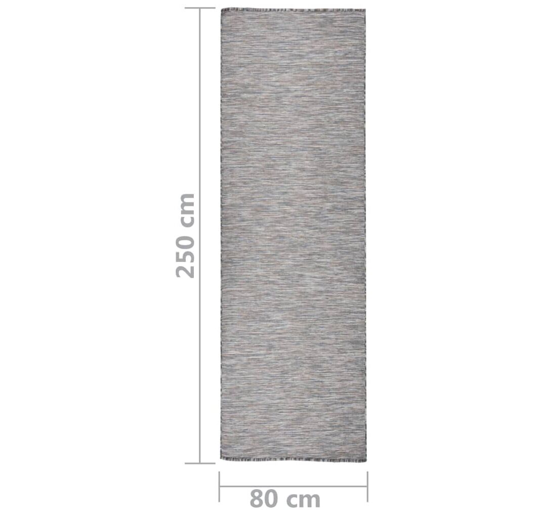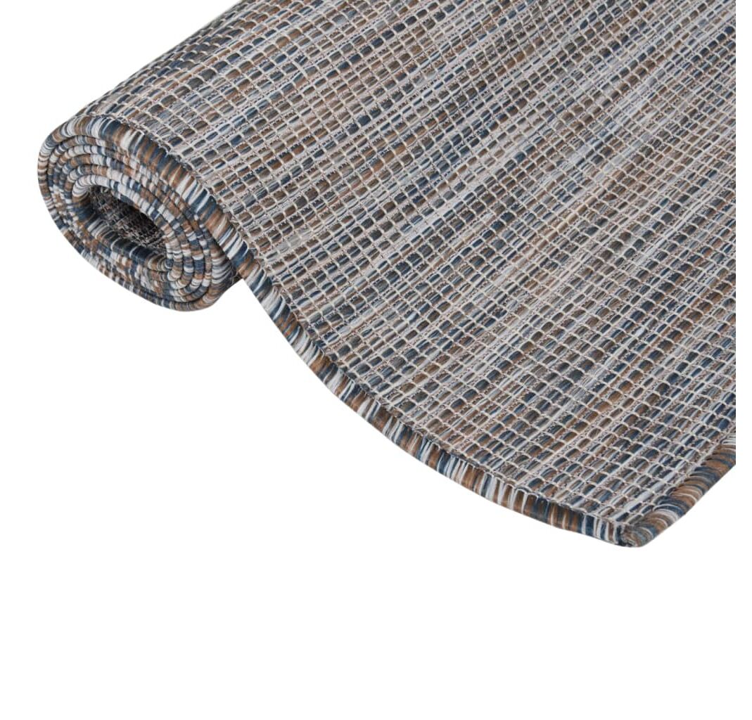 Covoarele din țesătură plată sunt fabricate din polipropilenă durabilă și, prin urmare, sunt robuste. Covorul este potrivit pentru utilizare pe terasă sau în balconul dvs., datorită designului său rezistent la UV și la intemperii.