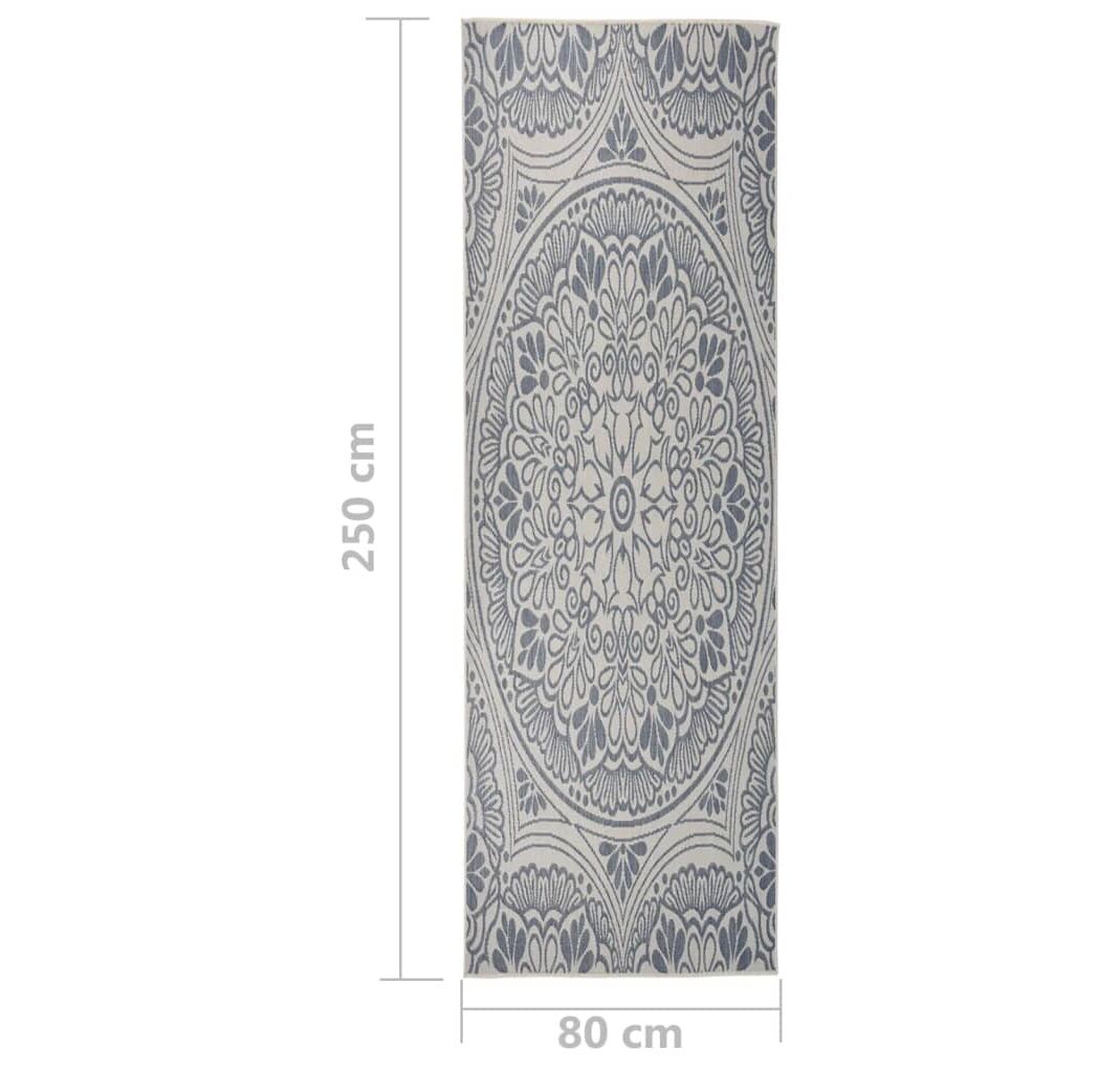Covor de exterior, model albastru, 80x250 cm, țesătură plată