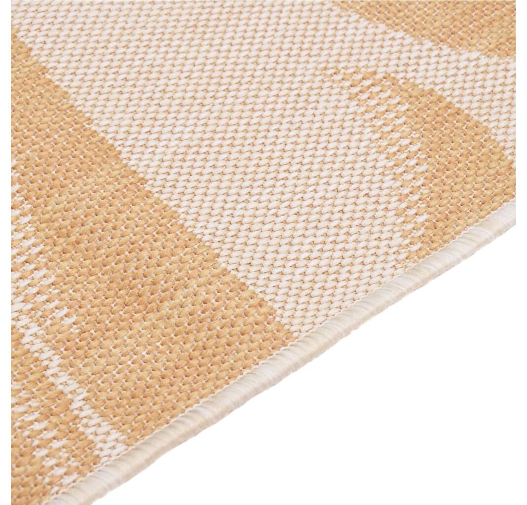 Covoarele din țesătură plată sunt fabricate din polipropilenă durabilă și, prin urmare, sunt robuste. Covorul este potrivit pentru utilizare pe terasă sau în balconul dvs., datorită designului său rezistent la UV și la intemperii.