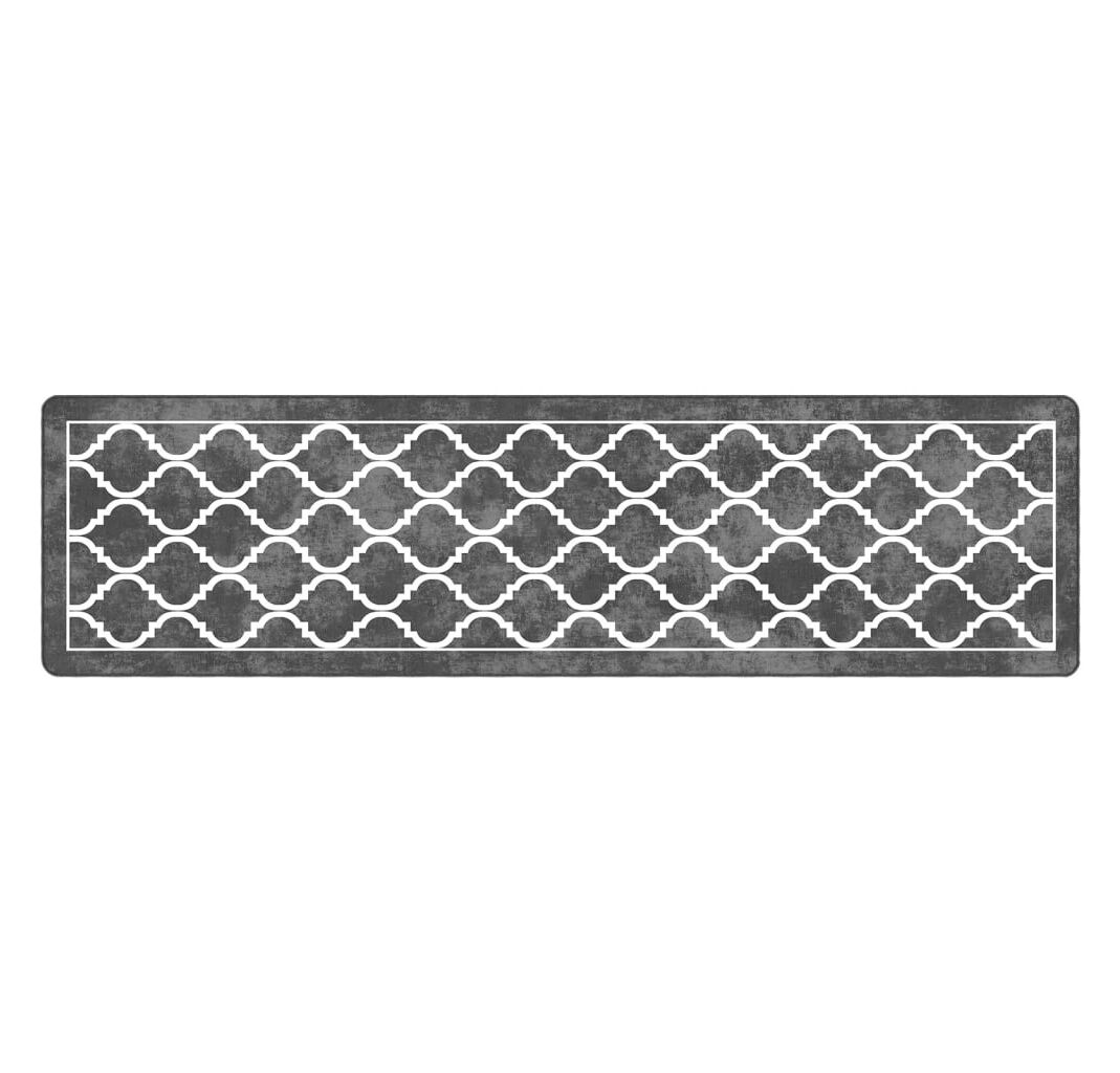 Covor lavabil, alb și negru, 80x300 cm, anti-alunecare