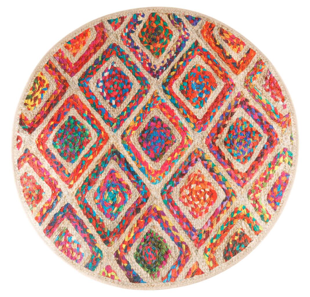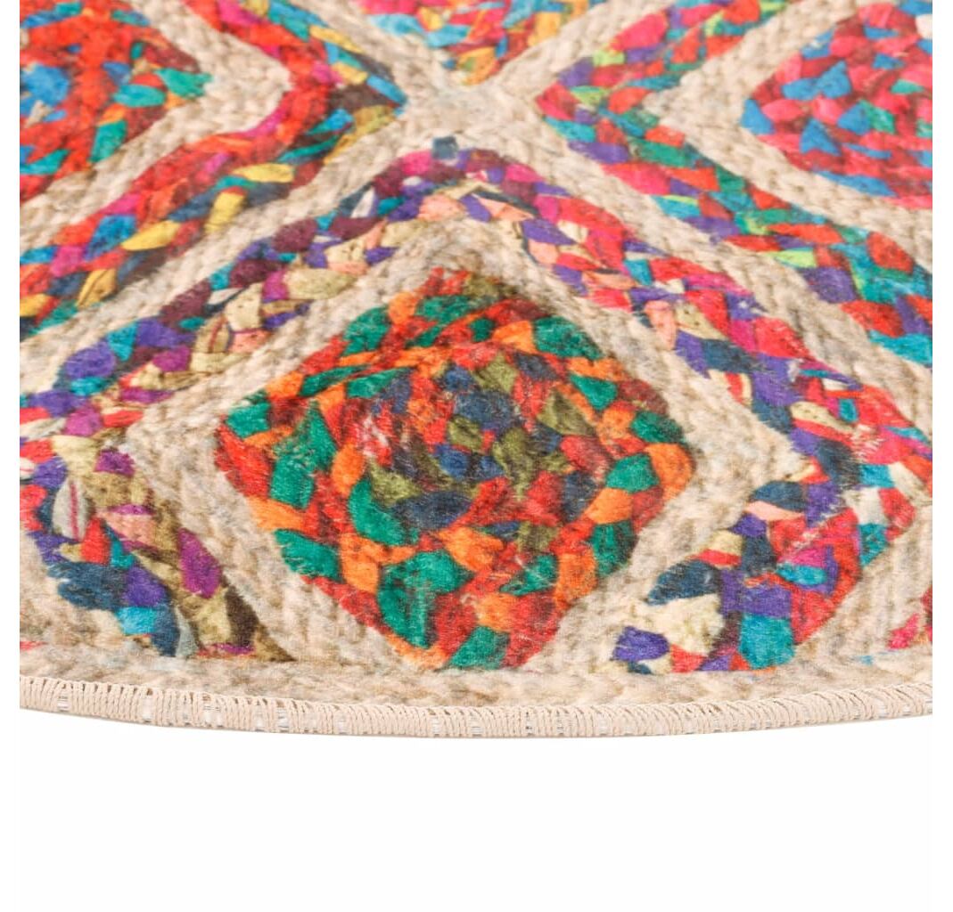 Covor lavabil, multicolor, Ø 120 cm, anti-alunecare
