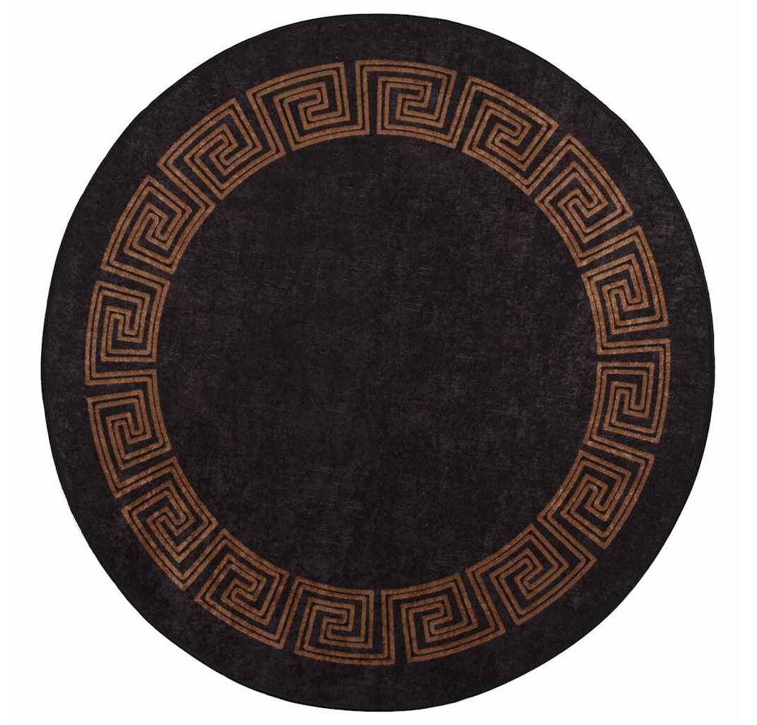 Covor lavabil, negru și auriu, φ120 cm, antiderapant