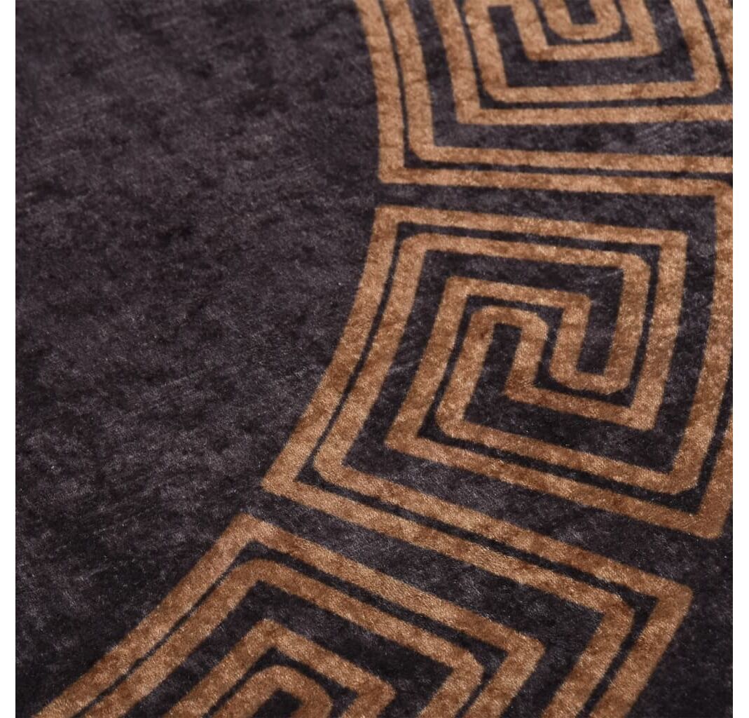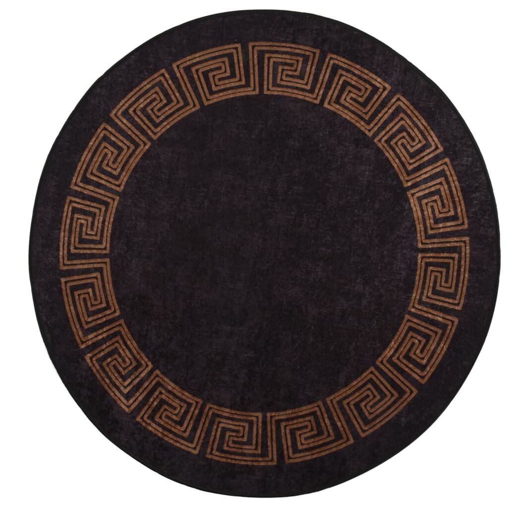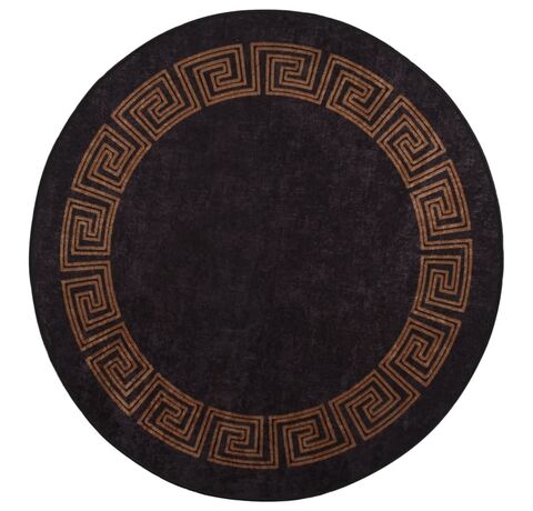 Covor lavabil, negru și auriu, Ø 200 cm, anti-alunecare