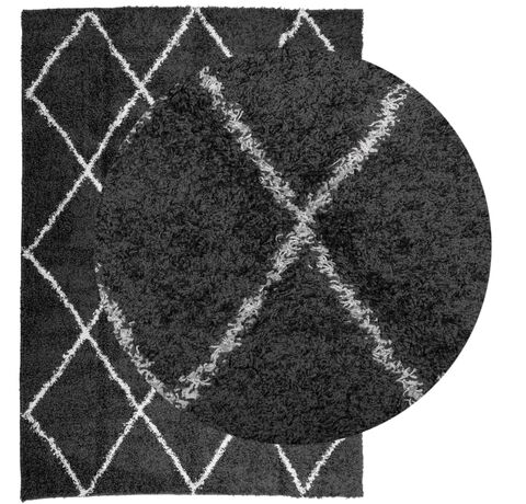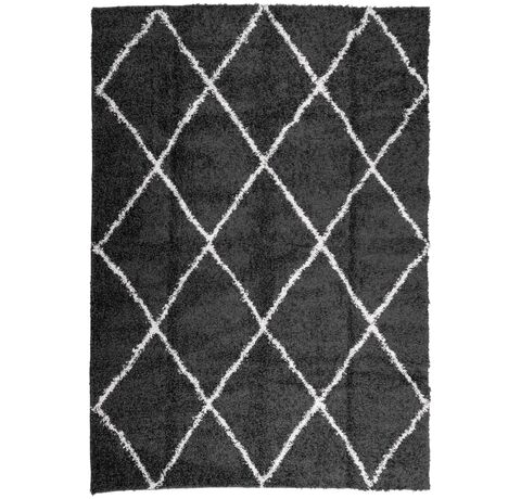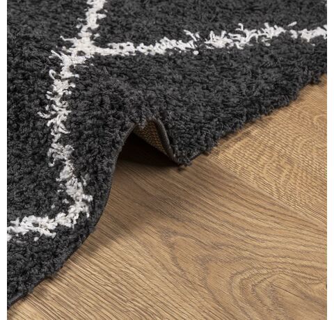Covor pufos "PAMPLONA" fire înalte negru/crem modern 120x170 cm