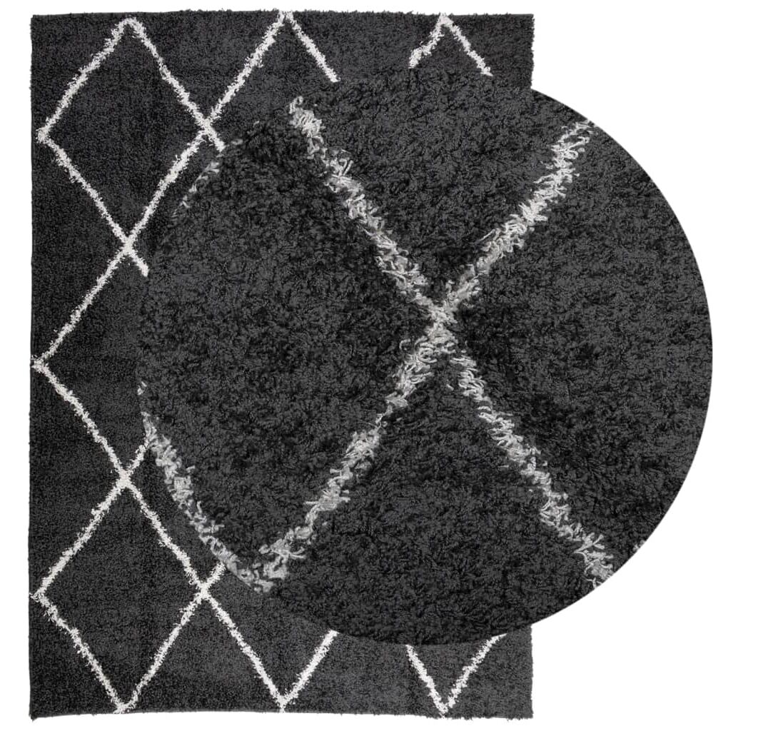 Covor pufos "PAMPLONA" fire înalte negru/crem modern 240x340 cm
