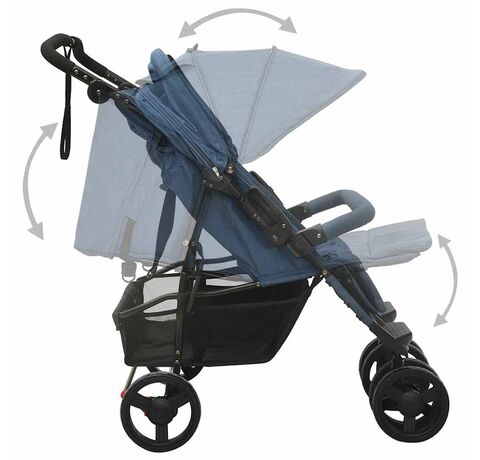 Căruciorul dublu are un cadru din oțel, care îl face robust și durabil. Spătarul și suportul pentru picioare sunt reglabile în mai multe poziții, oferind confort maxim copiilor dvs. Baldachinul rotund îi protejează în mod fiabil de lumina directă a soarelui. În plus, bara de protecție din față oferă o siguranță optimă, prevenind căderea acestora. Coșul practic inclus este ideal pentru depozitarea articolelor pentru bebeluși. Acest cărucior dublu este pliabil pentru depozitare și transport, ușoare.