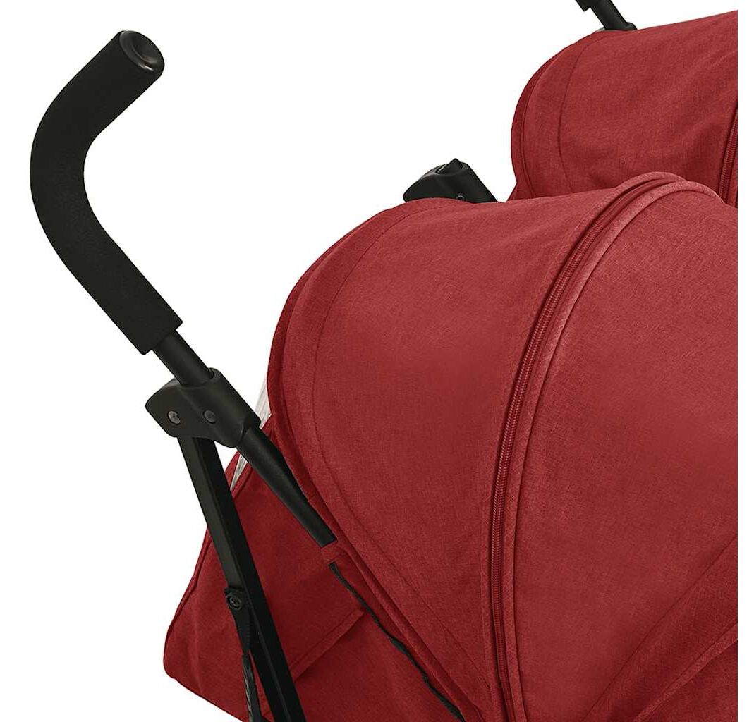 Spătarul acestui cărucior dublu poate fi reglat în 4 poziții, astfel încât bebelușul să găsească întotdeauna cea mai confortabilă poziție. Suportul pentru picioare este de asemenea reglabil. Baldachinul pliabil protejează copiii împotriva razelor solare și a razelor UV. Coșul inclus este potrivit pentru depozitarea lucrurilor precum scutece, pături sau jucării. Acest cărucior dublu poate fi, de asemenea, pliat înăuntru și afară cu o singură mână, într-o singură mișcare lină, făcându-l ușor de transportat.