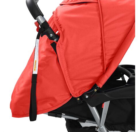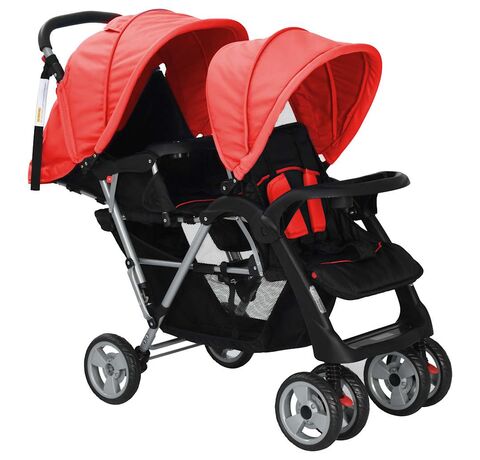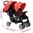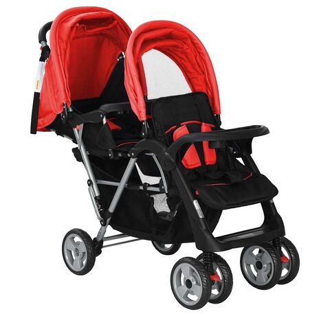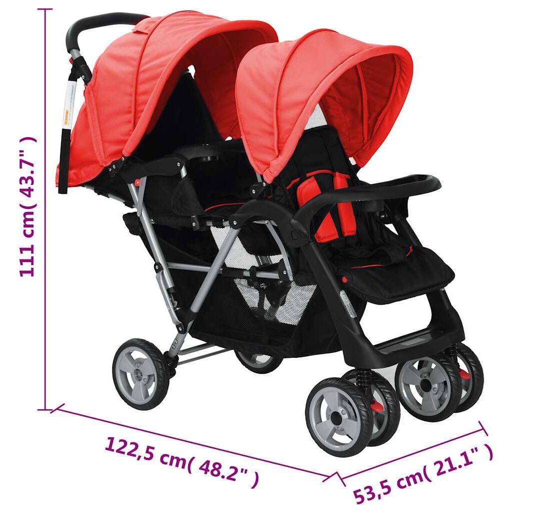 Cărucior în tandem din oțel, roșu și negru