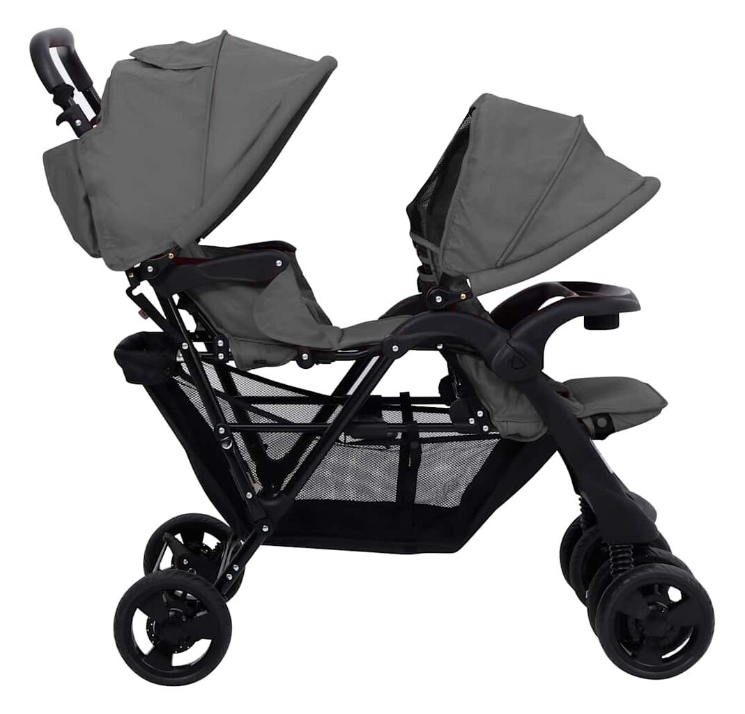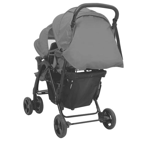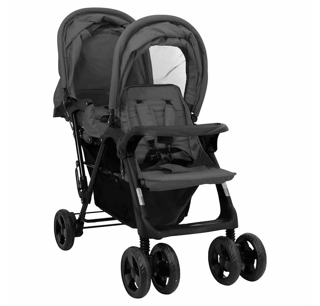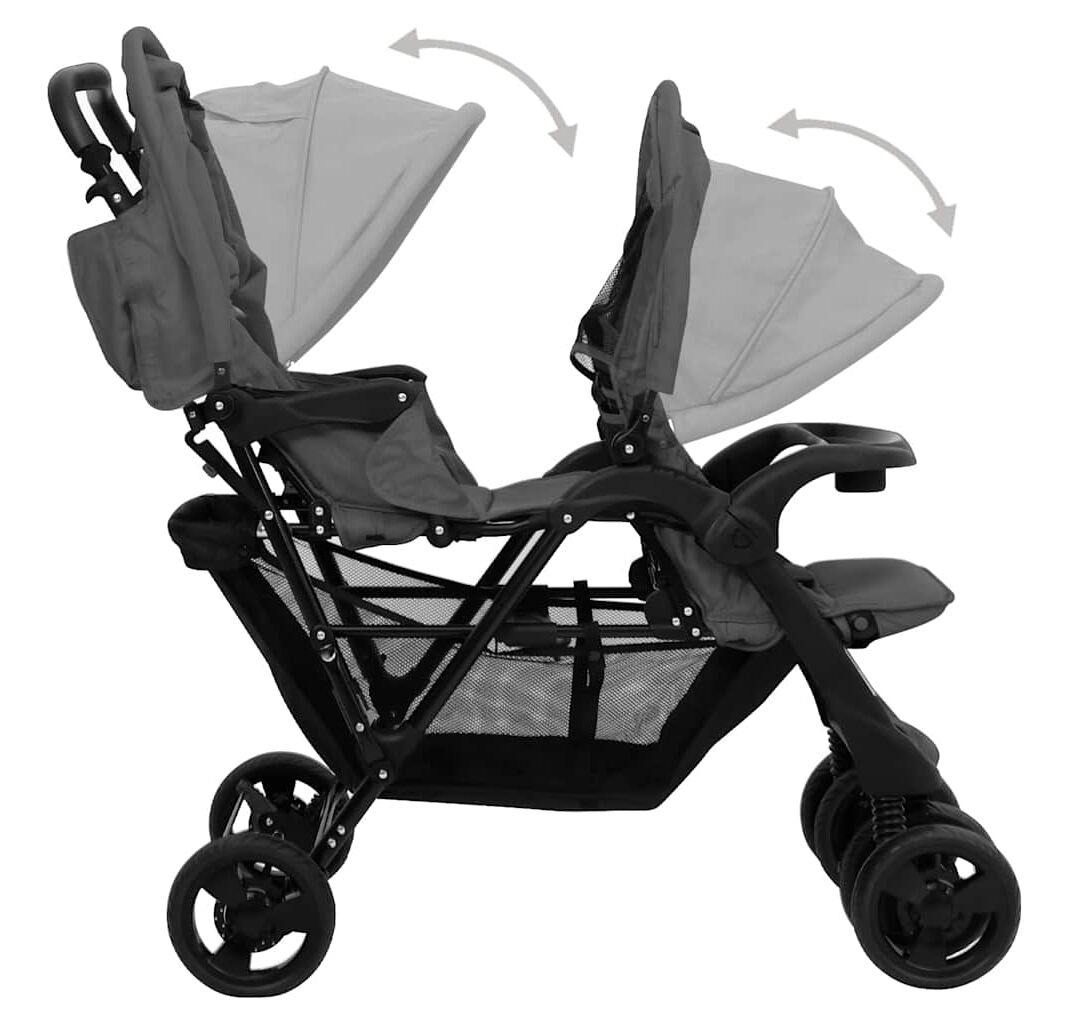 Cărucior pentru gemeni în tandem, gri închis, oțel