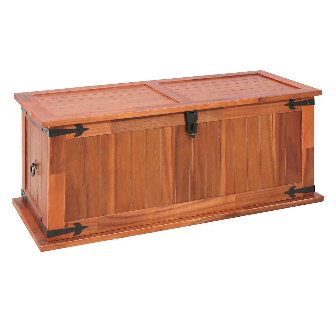 Cutia de depozitare oferă spațiu amplu de depozitare pentru haine, reviste, cărți, unelte și alte accesorii. Dispune de un zăvor în față și două mânere pe lateral. Datorită capacului plat și stabil, această ladă din lemn poate fi utilizată și ca măsuță de cafea, măsuță de canapea, masă pentru camera de zi, măsuță laterală, măsuță de capăt, etc. Lada de depozitare este realizată manual din lemn masiv de acacia. Măiestria rafinată și fibrele frumoase ale lemnului fac fiecare piesă de mobilier unică și ușor diferită de celelalte.