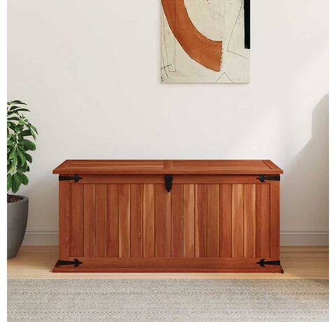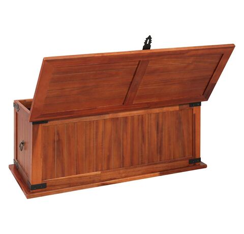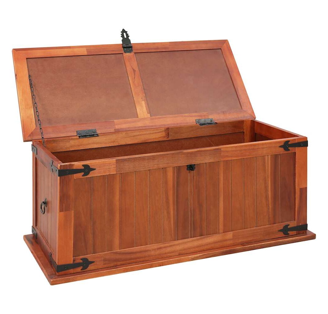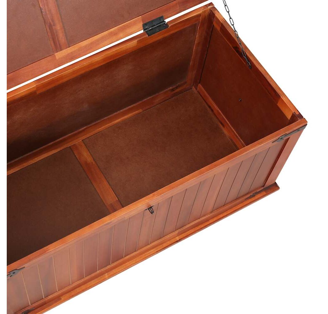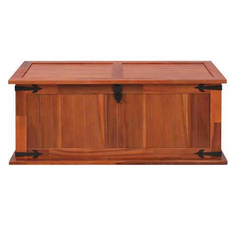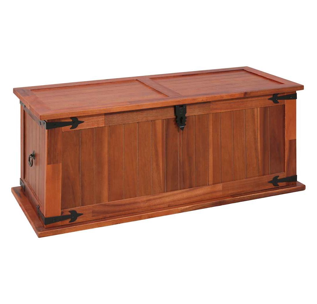 Cutia de depozitare oferă spațiu amplu de depozitare pentru haine, reviste, cărți, unelte și alte accesorii. Dispune de un zăvor în față și două mânere pe lateral. Datorită capacului plat și stabil, această ladă din lemn poate fi utilizată și ca măsuță de cafea, măsuță de canapea, masă pentru camera de zi, măsuță laterală, măsuță de capăt, etc. Lada de depozitare este realizată manual din lemn masiv de acacia. Măiestria rafinată și fibrele frumoase ale lemnului fac fiecare piesă de mobilier unică și ușor diferită de celelalte.