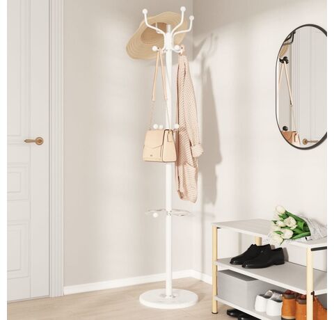 - Spațiu de depozitare suficient: Cuierul include 12 cârlige de depozitare, oferind spațiu suficient pentru a agăța articole, inclusiv îmbrăcăminte, genți, pălării și multe altele. Având cârligele poziționate pe diferite niveluri, cuierul vă ajută să vă depozitați lucrurile în ordine. Suportul inferior pentru umbrelă este perfect pentru depozitarea și uscarea umbrelelor.