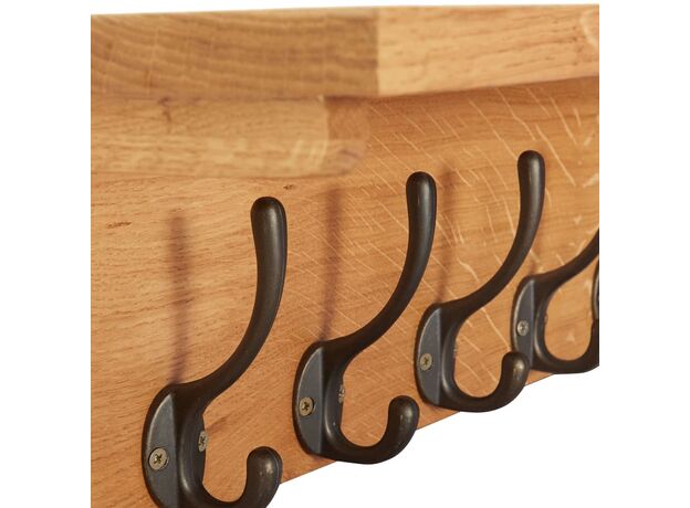 Acest cuier este realizat din lemn masiv de stejar și are o structură robustă, fiind extrem de durabil. Având 9 cârlige, cuierul oferă spațiu amplu pentru a vă agăța paltoanele, pălăriile, gențile, pălăriile etc. Se potrivește oricărui decor și transformă un perete gol sau un dulap plictisitor într-o caracteristică impresionantă!