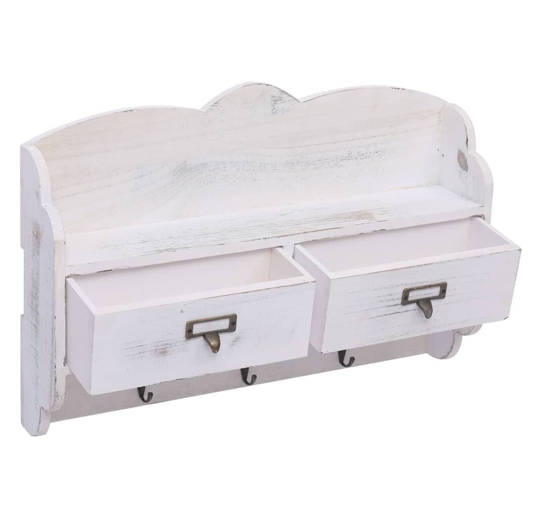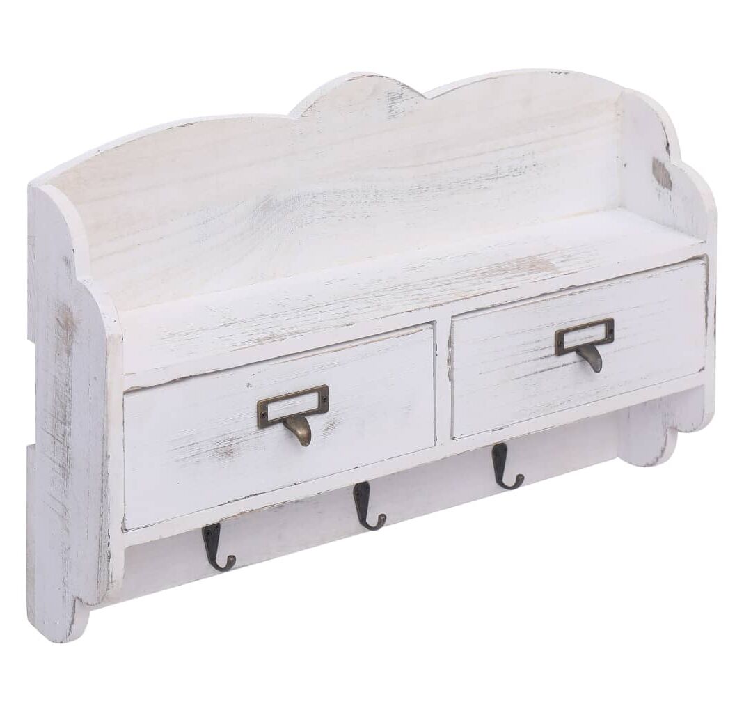V-aţi săturat să aruncați paltonul pe scaune? Vă pierdeți cheile? Sau puneți corespondența importantă în sertare aleatorii, pentru a nu mai fi văzută niciodată? Cu 2 sertare și 3 cârlige, acest suport de haine din lemn montat pe perete vă va ajuta să vă mențineți casa în ordine.