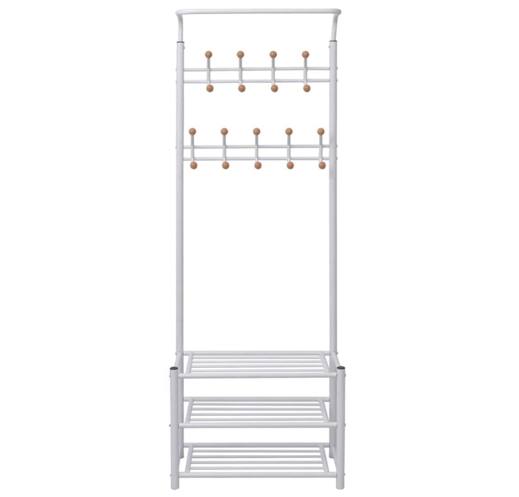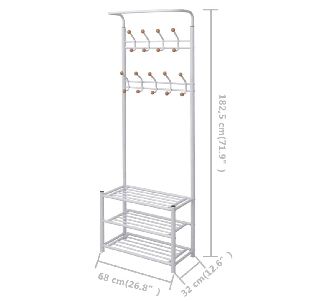 Acest cuier vă va oferi o soluție de depozitare rapidă, practică și portabilă, pentru păstrarea hainelor, eșarfelor, pălăriilor, etc. Rafurile robuste din partea inferioară sunt utilizate pentru depozitarea încălțămintei și a altor obiecte, în mod ordonat. Cu un design simplu și, în același timp, elegant, acest cuier se potrivește în orice decor.