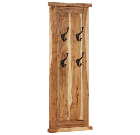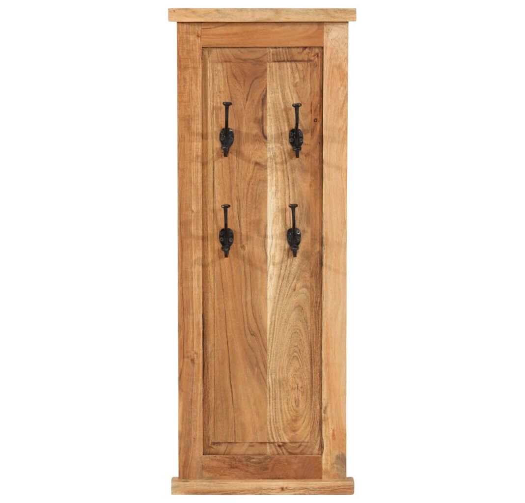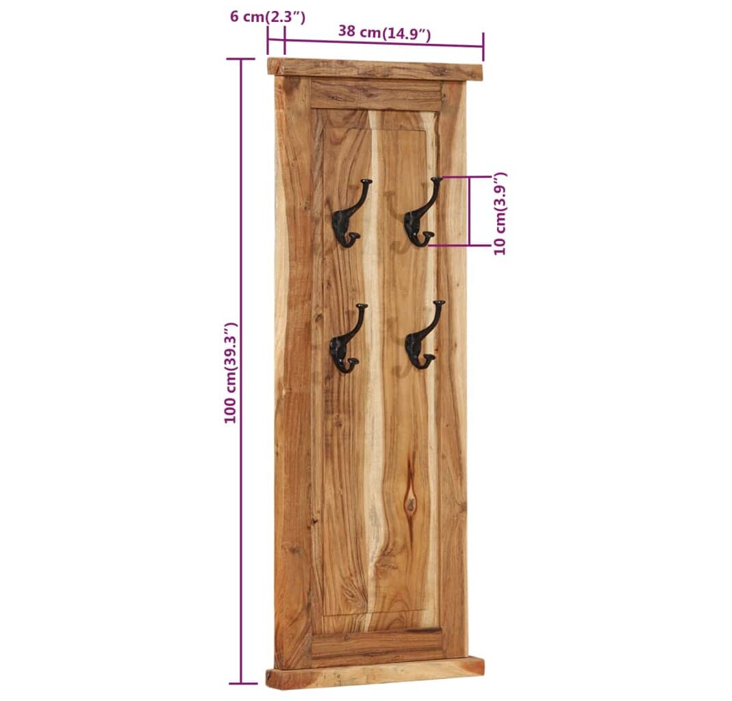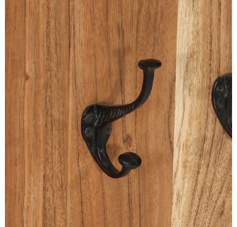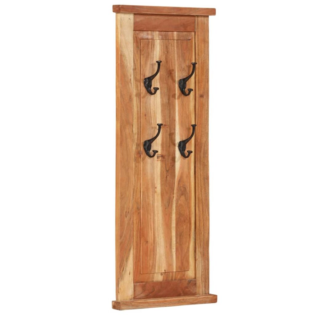 Fiecare suport pentru haine are 4 cârlige din fier forjat, care sunt foarte puternice și durabile. Aceste suporturi retro și atemporale montate pe perete reprezintă o soluție perfectă pentru a vă păstra hainele, eșarfele sau pălăriile bine organizate. Cuierele pentru haine sunt realizate din lemn masiv de acacia și sunt foarte stabile și durabile. Lemnul de acacia este un lemn de esență tare, cu fibre frumoase, care va rezista mulți ani. Fiecare pas al procesului este realizat cu cea mai mare grijă, fie că este vorba de lustruire, vopsire sau lăcuire. Măiestria rafinată și fibrele frumoase ale lemnului fac fiecare piesă de mobilier unică și ușor diferită de cealaltă.