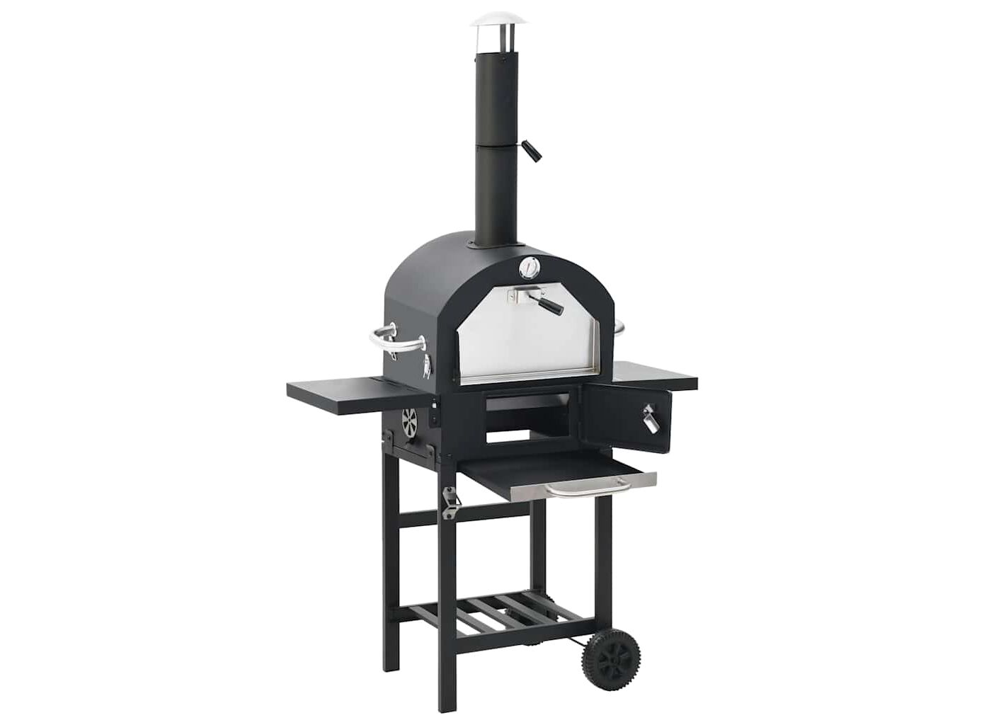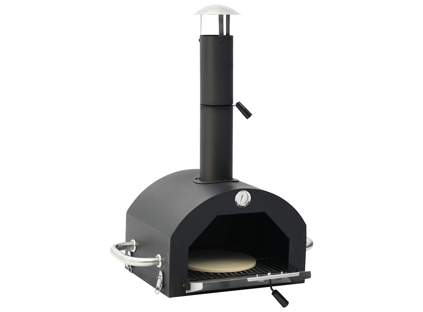 Fabricat din SPCC de înaltă calitate, vopsit electrostatic, acest cuptor este extrem de robust și durabil. Cuptorul este dotat cu un termometru încorporat care afișează temperatura de gătit în interior. Ușa simplu de deschis și coșul de fum cu capac asigură circulația aerului și controlul excelent al temperaturii. Are și două mânere care oferă confort suplimentar. O piatră de pizza este inclusă pentru a coace pizza sau alte alimente. Vă rugăm să rețineți că acest cuptor trebuie utilizat împreună cu grătarul pe gaz pe care îl puteți găsi în magazinul nostru.