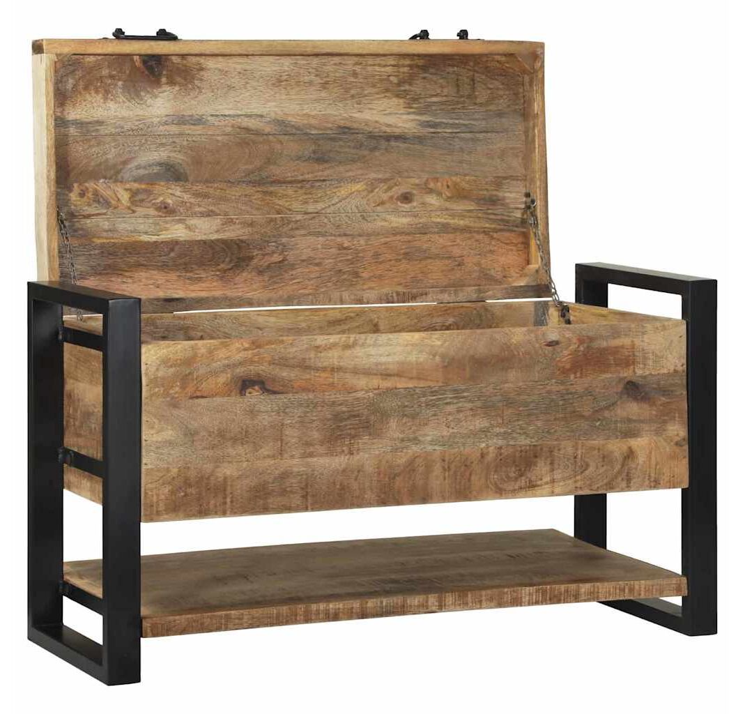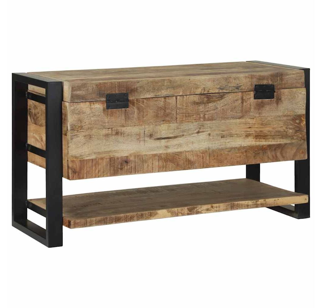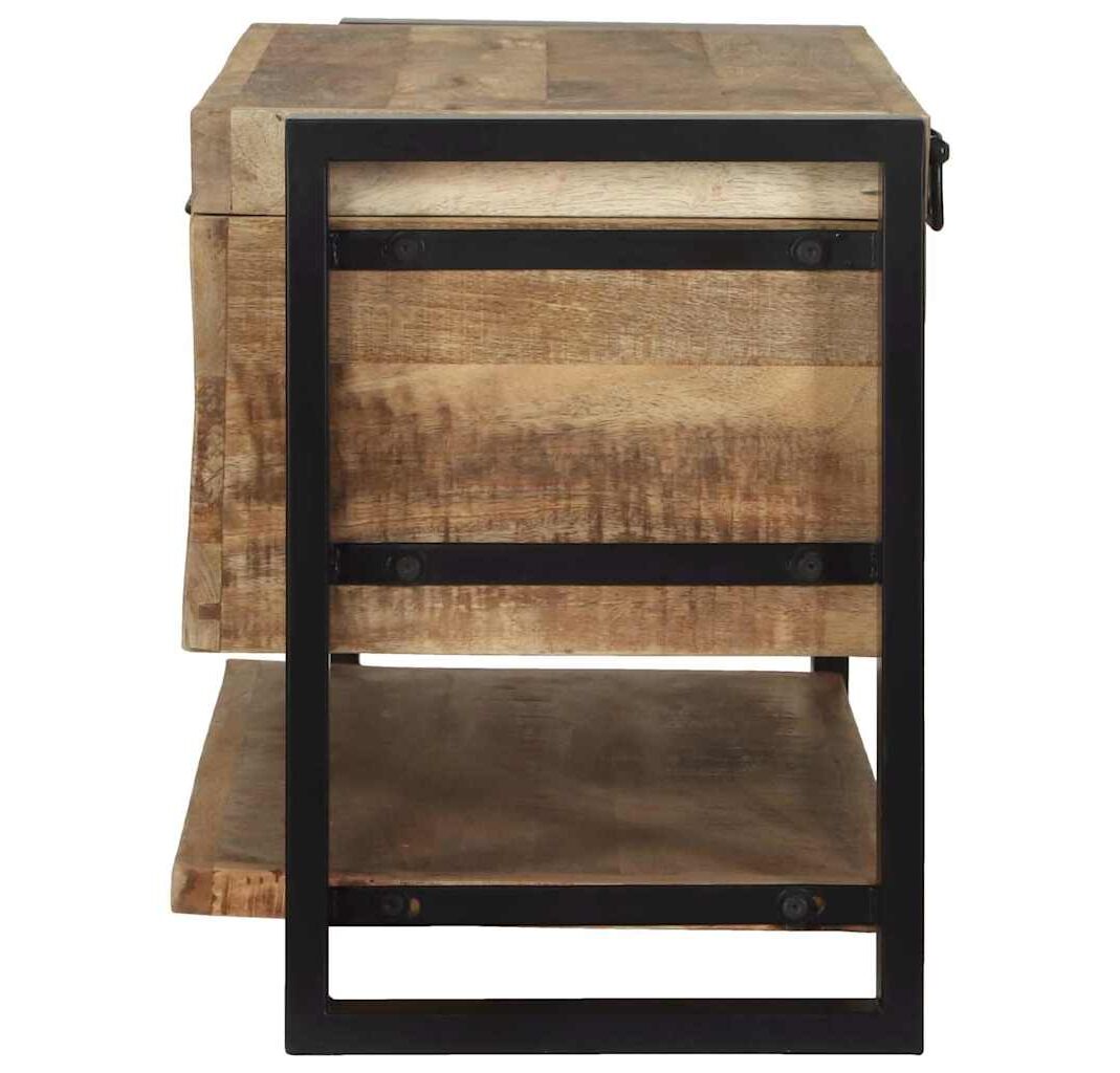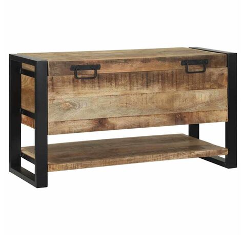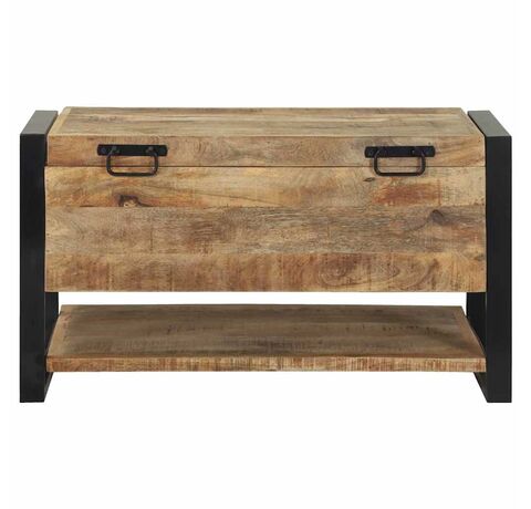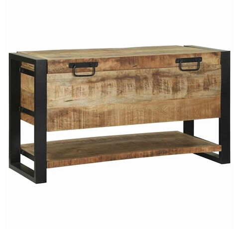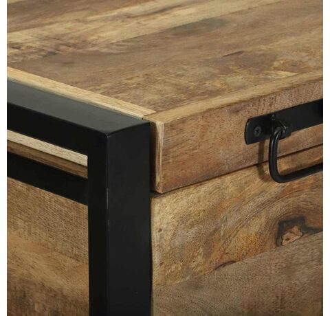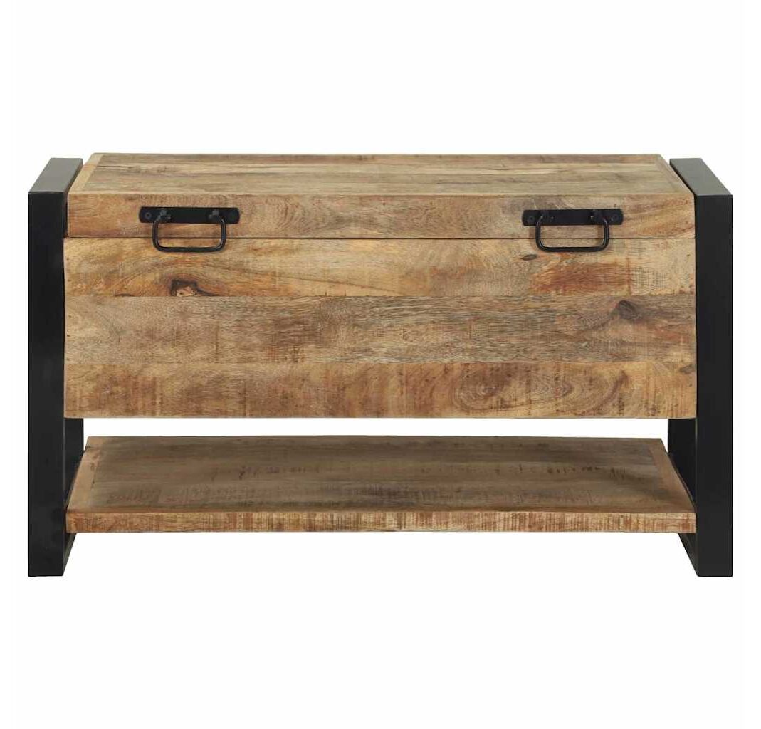 Cufărul ăsta rustic-industrial îmbină stilul cu funcționalitatea. E o addare super pentru camera de zi, dormitor sau hol. Cu lemn de mango brut și un cadru metalic vopsit în negru, are o senzație industrială și oferă mult loc de stocare pentru lucrurile tale.