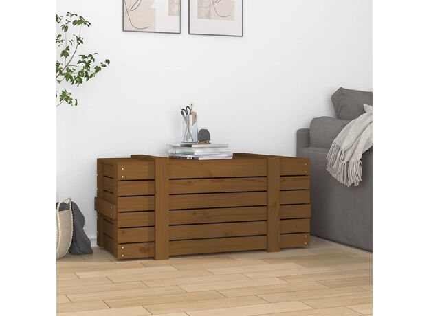Cutie de depozitare, maro miere, 91x40,5x42 cm, lemn masiv pin