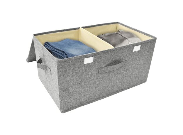 Sunt realizate din diverse țesături, care sunt destul de durabile. Cu 2 compartimente, cutia de depozitare poate oferi un spațiu amplu pentru a depozita jucării, eșarfe, șosete, cărți etc. Atunci când nu este folosită, cutia poate fi pliată pentru a economisi spațiu. În plus, cutia are un mâner pe care îl puteți folosi pentru a o scoate cu ușurință din dulap.