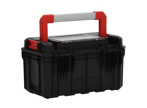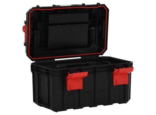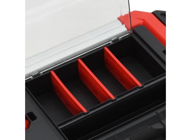 Această cutie de scule practică, cu tăvi adânci și compartimente de depozitare de diferite dimensiuni, este un ajutor util în garaj, atelier și în locuri similare!