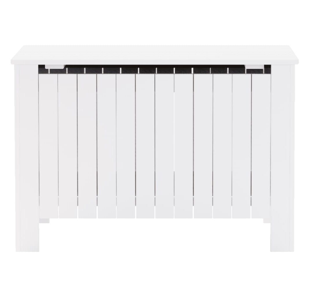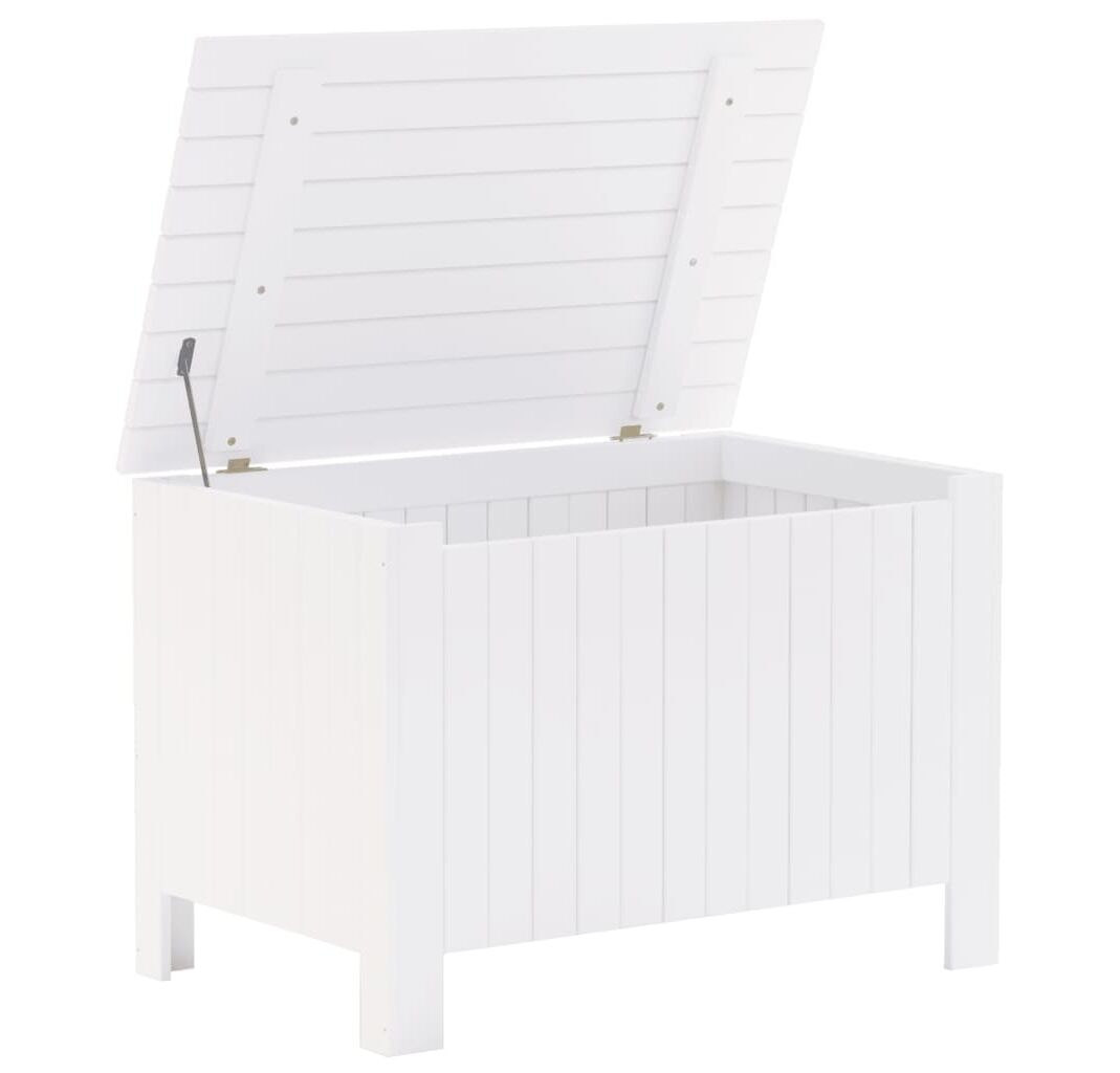 - Design cu șipci: Designul cu șipci permite o bună ventilație a lucrurilor din interiorul cufărului de depozitare.