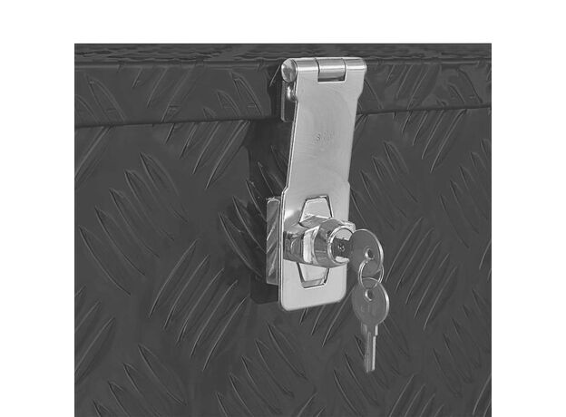 Fabricată din foaie de aluminiu ondulată de înaltă calitate, această cutie de remorcă este rezistentă la rugină și durabilă. Cutia de depozitare are un interior spațios pentru depozitarea sculelor, a accesoriilor sau a echipamentelor și este de asemenea echipată cu un sistem de blocare pentru o siguranță suplimentară (2 chei incluse).