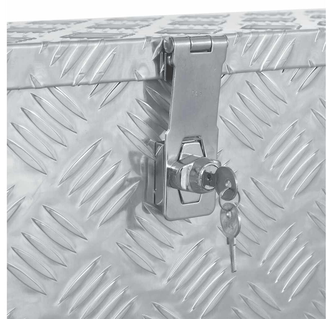 Fabricată din foaie de aluminiu ondulată de înaltă calitate, această cutie de remorcă este rezistentă la rugină și durabilă. Cutia de depozitare are un interior spațios pentru depozitarea sculelor, a accesoriilor sau a echipamentelor și este de asemenea echipată cu un sistem de blocare pentru o siguranță suplimentară (2 chei incluse).