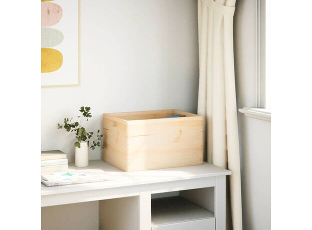 Crește-ți spațiul de depozitare acasă cu această cutie din lemn masiv de pin, combinând funcționalitatea cu farmecul rustic.