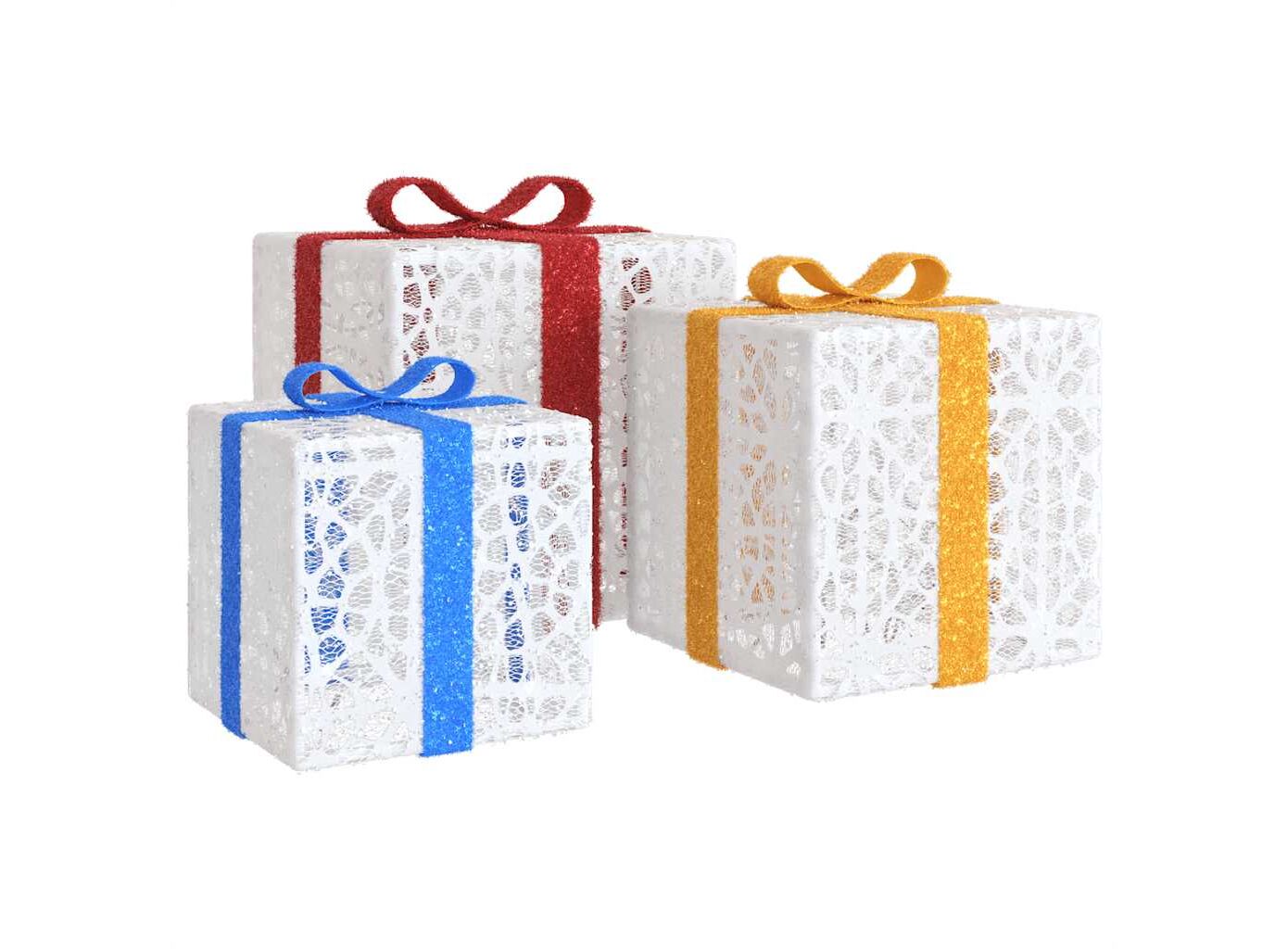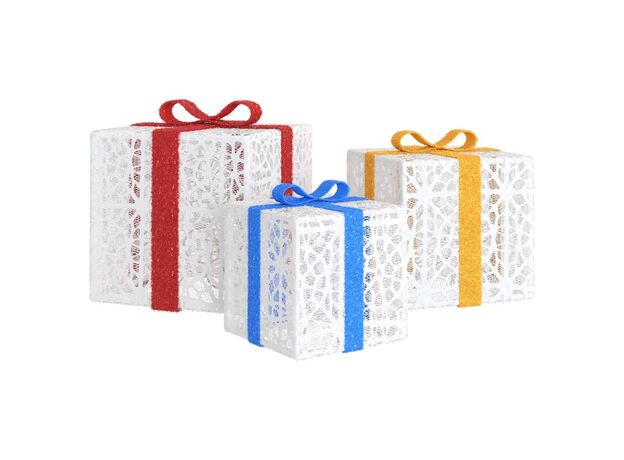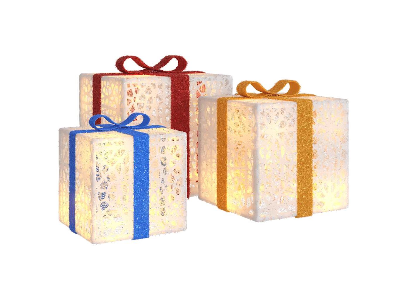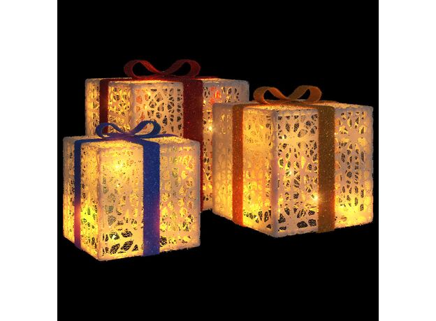 Cutii de Crăciun iluminate, 3 buc., 64 LED-uri, alb cald