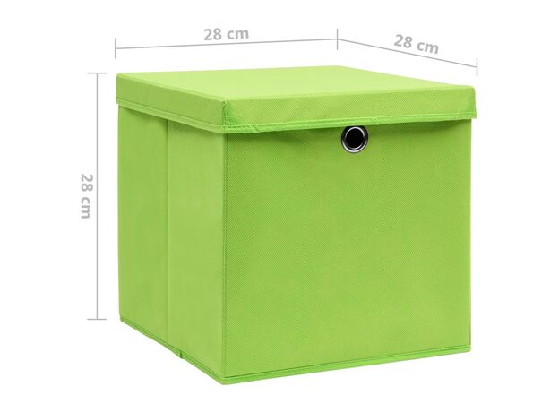 Cutii depozitare cu capac, 4 buc., verde, 28x28x28 cm