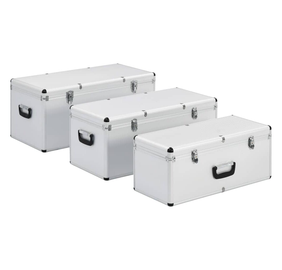 Cutii de depozitare, 3 buc., argintiu, aluminiu