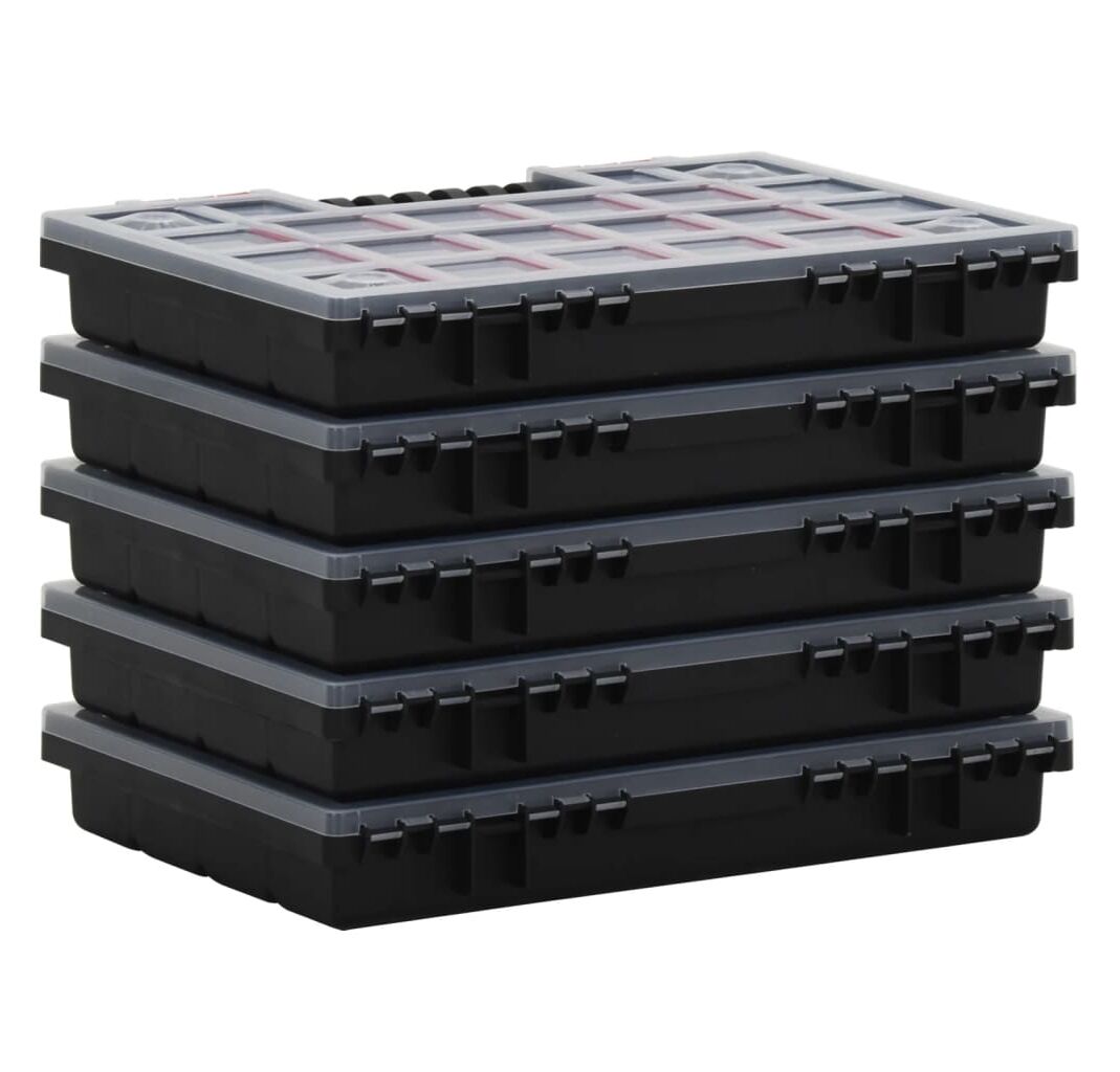 Acest set de cutii pentru organizare, cu separatoare reglabile, este un ajutor practic excelent în garaj, atelier și în locuri similare!