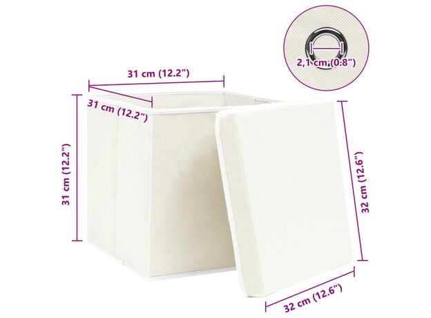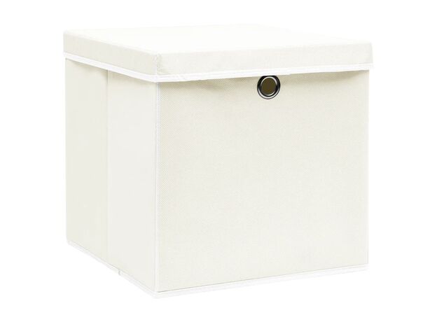 Cutii depozitare cu capace 4 buc. alb, 32x32x32 cm, textil
