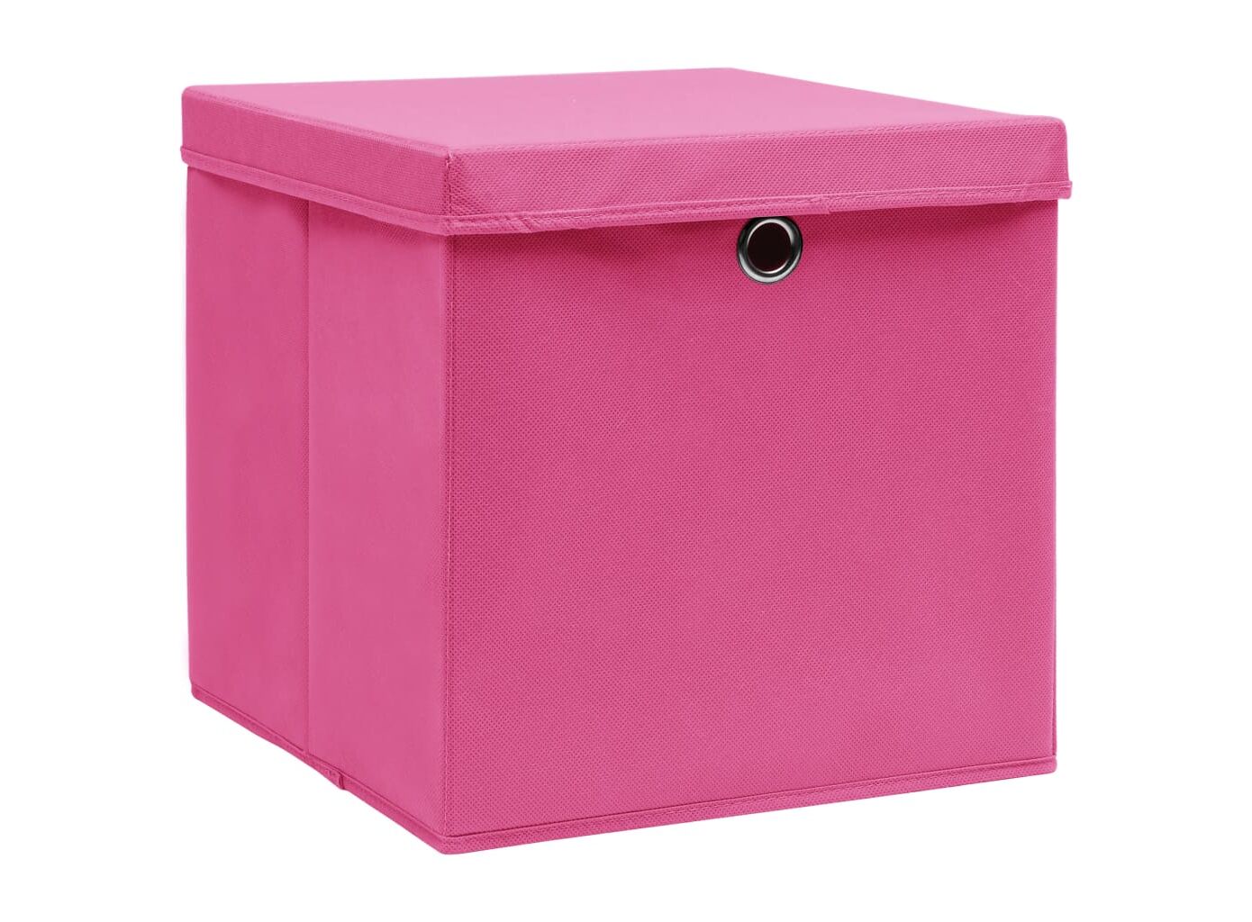 Cutii depozitare cu capace 10 buc. roz, 32x32x32 cm, textil