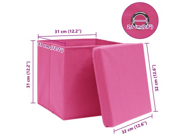 Cutii depozitare cu capace 4 buc. roz, 32x32x32 cm, textil