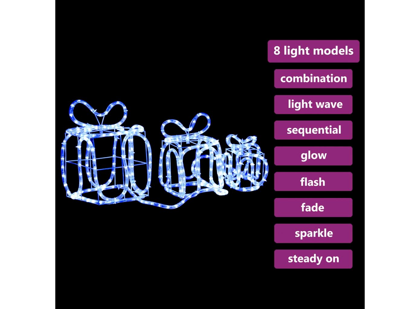 Aceste cutii de cadou 3D au LED-uri albe calde, care emit o strălucire blândă, fiind ideale atât pentru interior, cât și pentru exterior.