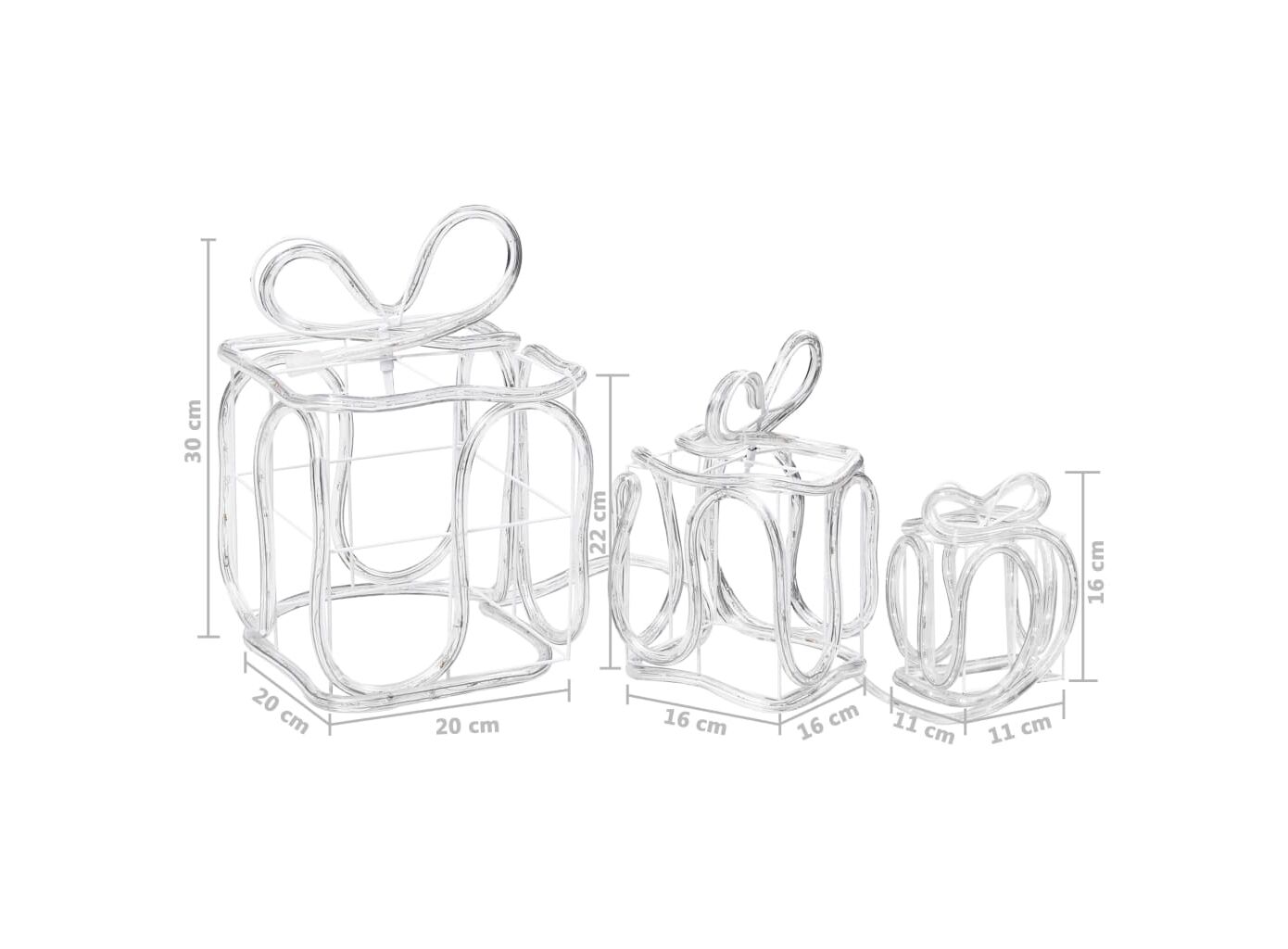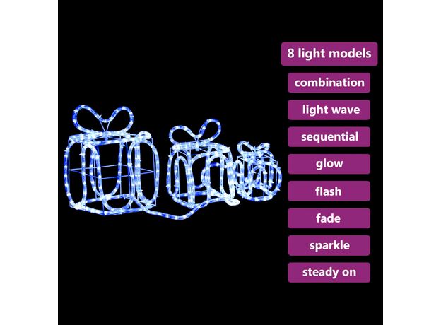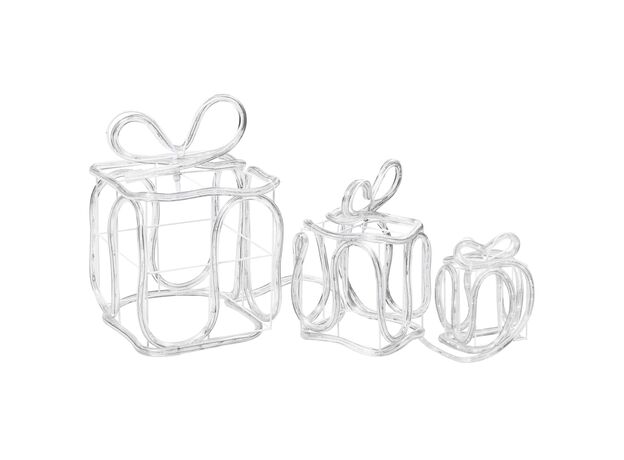 Creați strălucire de Crăciun, cu setul nostru de 3 decorațiuni în formă de cutii de cadou! Această decorațiune de Crăciun este impermeabilă, având o clasă de protecție IP44.